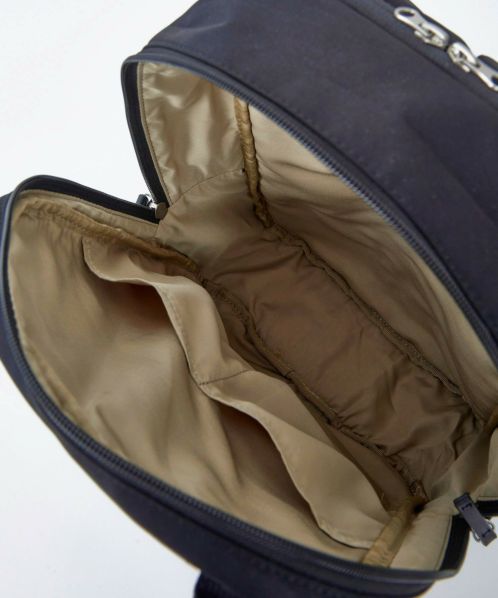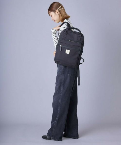 バイカラーのパイピングデザインと使い合わせの合皮がアクセントになったスクエア型のリュック。前面のポケットは大きく開けやすく、中身の出し入れがしやすくなっております。背面にはPCが収納可能でA4サイズで通勤や通学にも最適です。