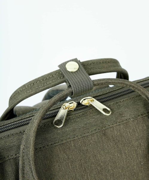 上品な発色の杢調ポリエステルを使用しました。カラーごとに使い分けたシルバーとゴールドの金具がアクセントに。小ぶりですがA4サイズが収納でき、小柄な方やリュックをすっきりと背負いたい方におすすめです。