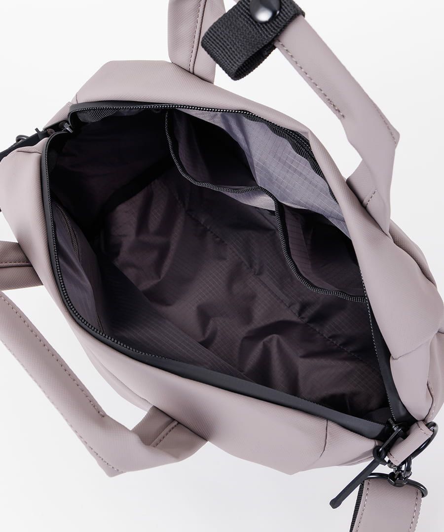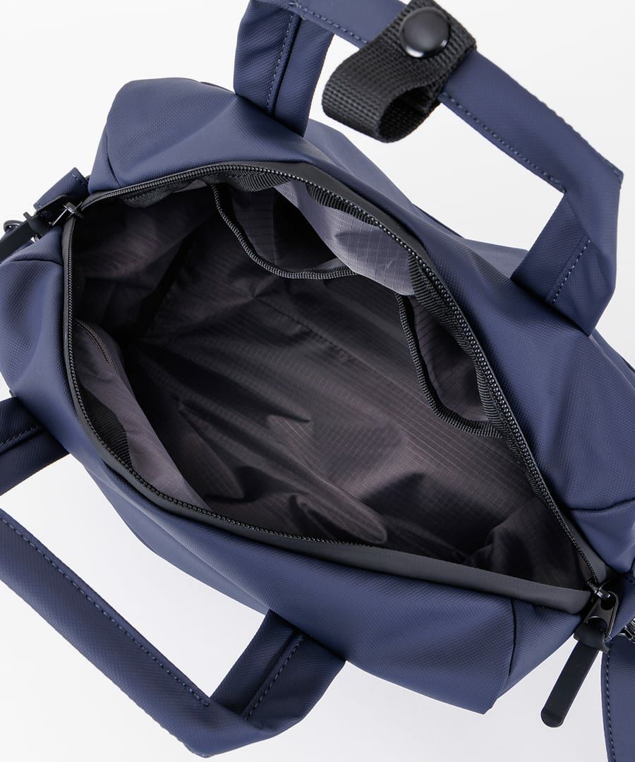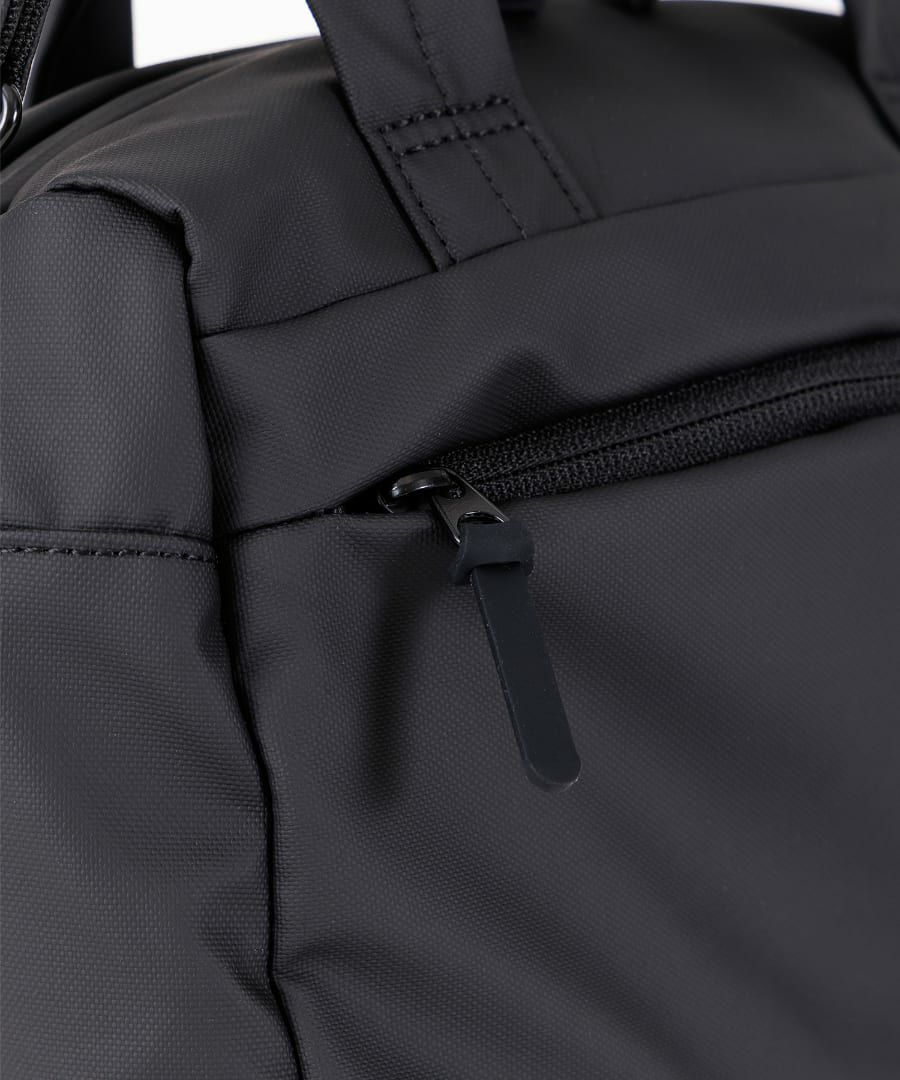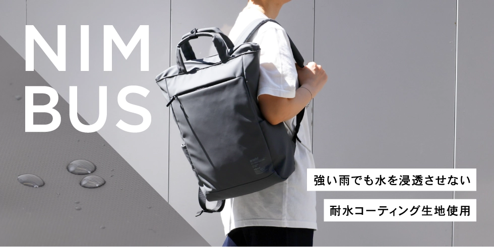 水を通さない耐水コーティングを施した生地を使用した、 バッグのシリーズ『NIMBUS(ニンバス)』。 生地の隙間を埋めるようにコーティングするため、 強い雨でも水を浸透させないのが特徴。 ビジネスシーンからデイリーにも使えるシンプルなデザイン。