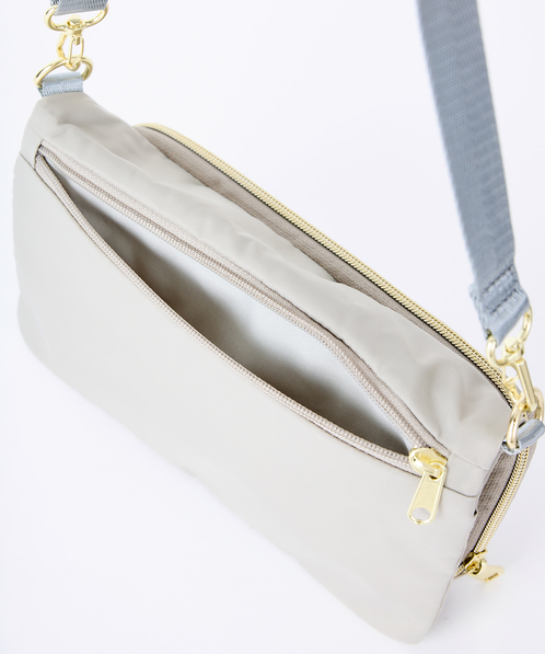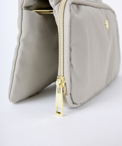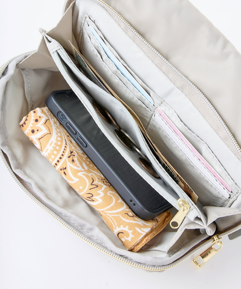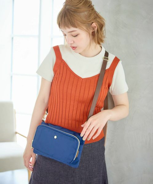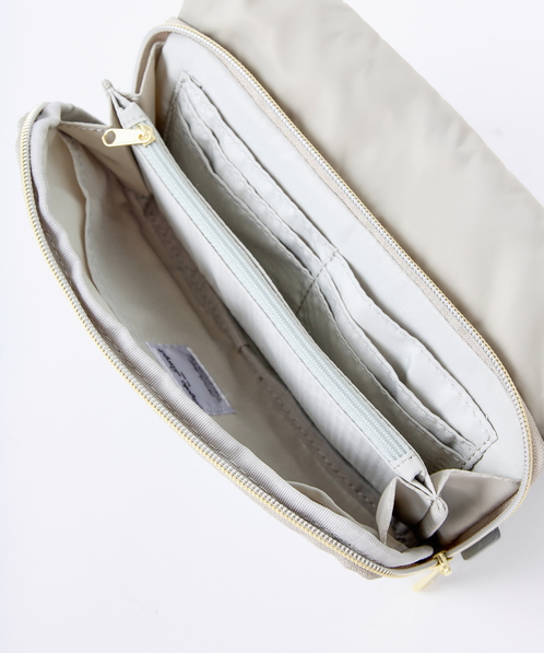 外出する際ピッタリなお財布機能付きショルダーバッグがナイロン素材で登場。撥水加工も施されているので雨や汚れもサッとふけるのが魅力的◎お財布機能はもちろんパスポートや母子手帳も入り旅行や日々のお出かけにもオススメです。ダブルフェイス仕様できれいめとカジュアルふたつの顔が楽しめます。