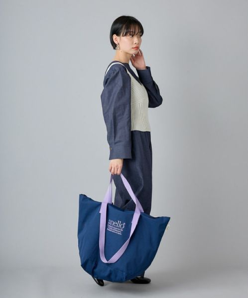 キャンバス調の生地にトレンド感のあるロゴを刺繍しました。軽く、洗濯機でのお手入れが可能でラフに使えるのが魅力。A3サイズが収納可能な大きめトートバッグは、ハンドルが2本ついているから、肩掛けと手持ち両方の持ち方ができる2WAY仕様。1泊~2泊の旅行の荷物を入れるのにもぴったりです。※この製品は洗濯後に乾燥が不十分な場合、金具・部材の劣化や生地の臭いの発生等の可能性がございますのでご注意ください。