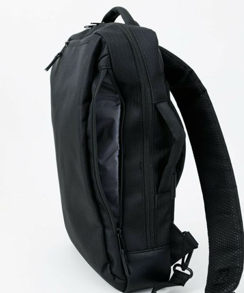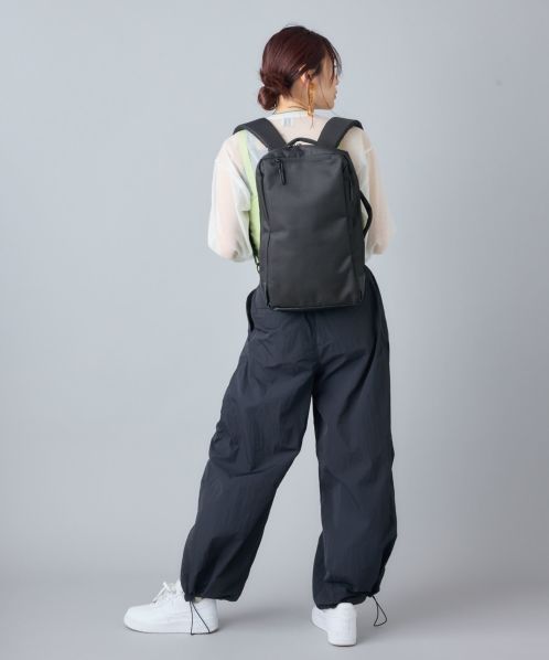 ヘリンボーン生地に合わせたBONEシリーズ。10ポケット、撥水加工、A4サイズ、PC収納、キャリーオンなど嬉しい機能が満載◎背面ショルダーをポケットに仕舞えば手持ち使いも可能な2WAY仕様。薄マチで電車の中でもかさばらないデザインが使いやすい◎