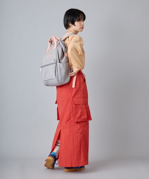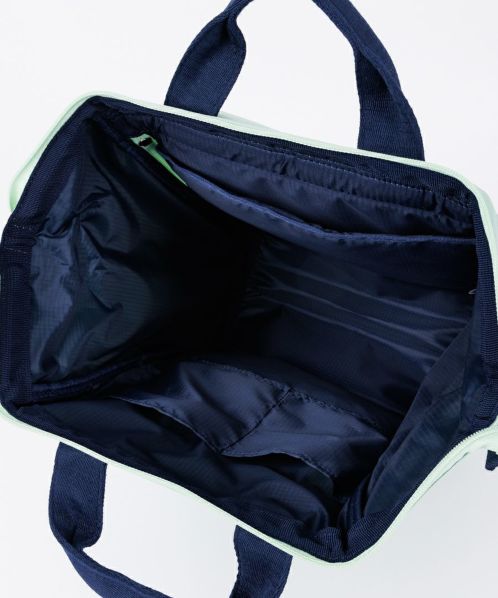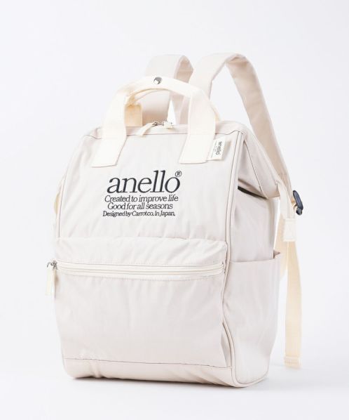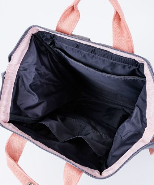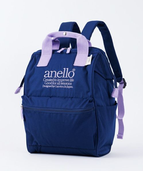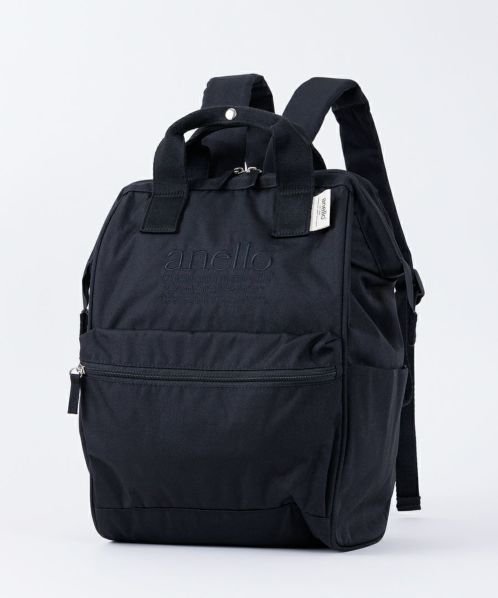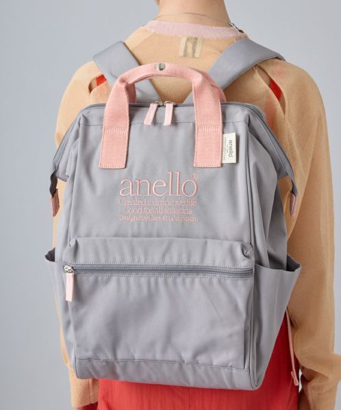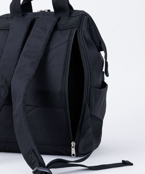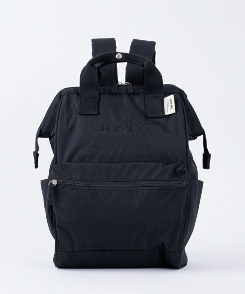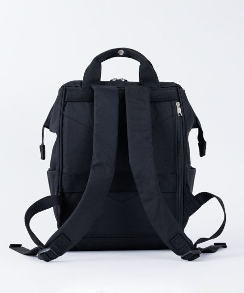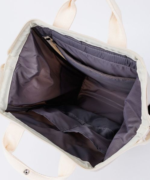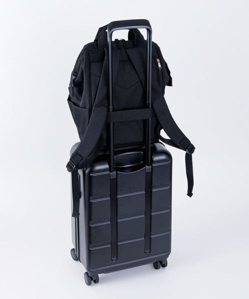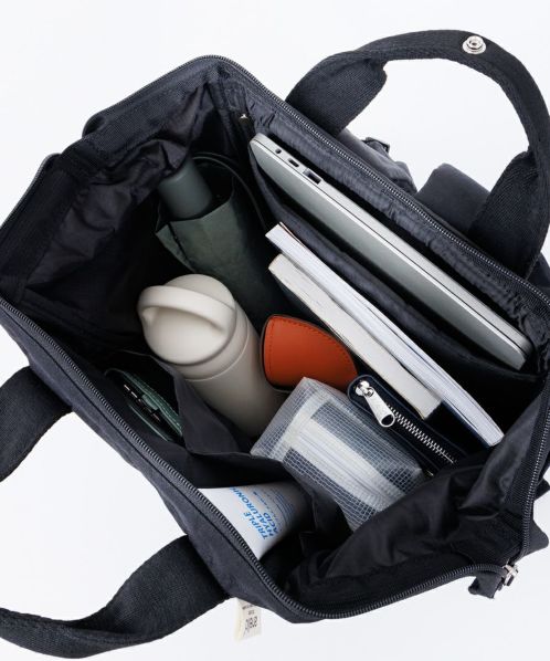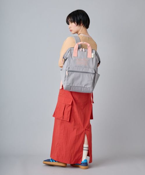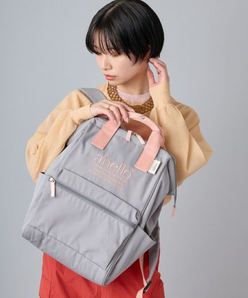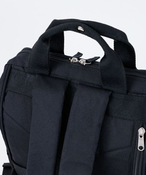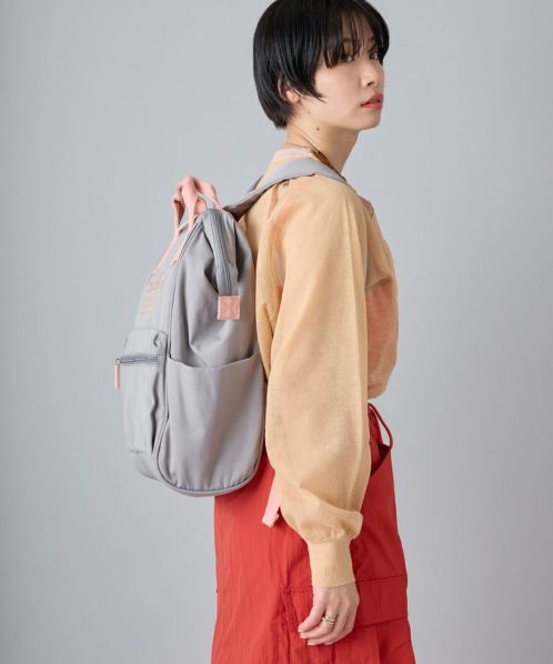 キャンバス調の生地にトレンド感のあるロゴを刺繍しました。軽く、洗濯機でのお手入れが可能でラフに使えるのが魅力。アイコンの口金リュックも、刺繍ロゴデザインで新鮮な雰囲気に。13インチのPCが収納でき、キャリーオンテープも備えた機能的なリュック。レギュラーサイズで540gという軽さはうれしいポイント。※この製品は洗濯後に乾燥が不十分な場合、金具・部材の劣化や生地の臭いの発生等の可能性がございますのでご注意ください。