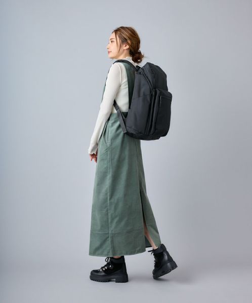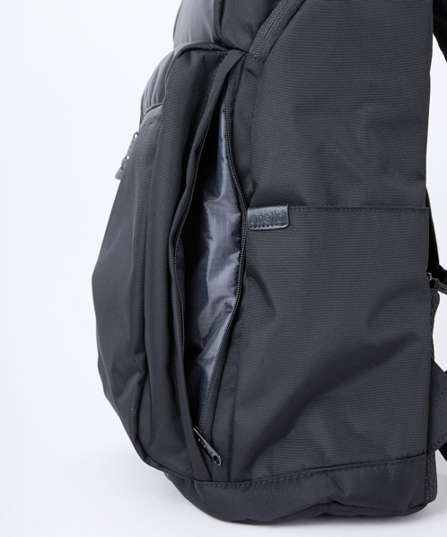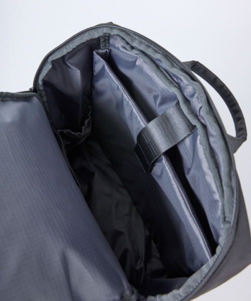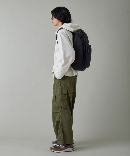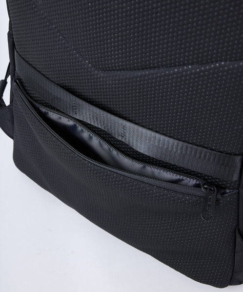 さらに斜めにカットされたサイドポケットは500mlのペットボトルが隠れ、後ろからの見え方がすっきりとした印象に見せることができ、シンプルながら細部にもこだわったリュック。