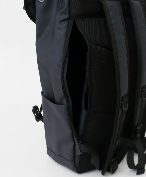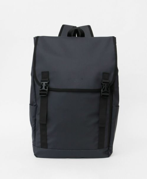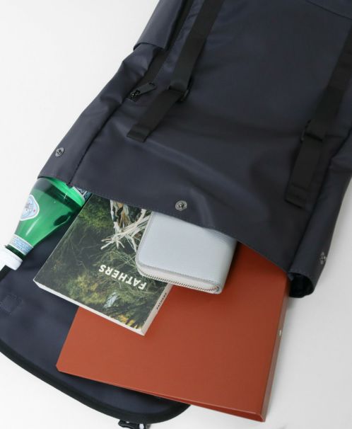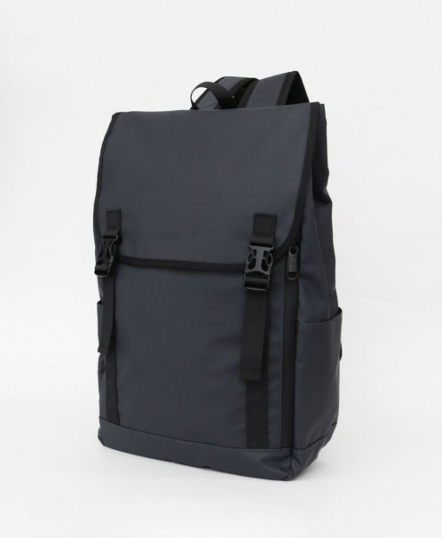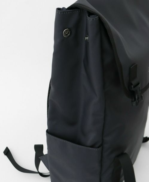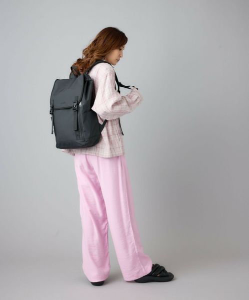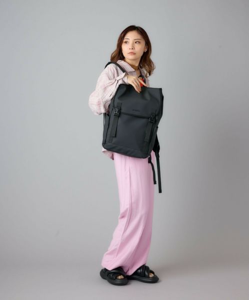 同シリーズのスクエアリュックよりもカジュアルな印象に仕上げたフラップリュック。A4サイズ対応でPC収納用のポケット付き。通学、ビジネスにも使えるデザインと撥水加工された生地がポイント。生地の特性上、折れたりシワになった部分は白くなる場合がございます。あらかじめご了承ください。
