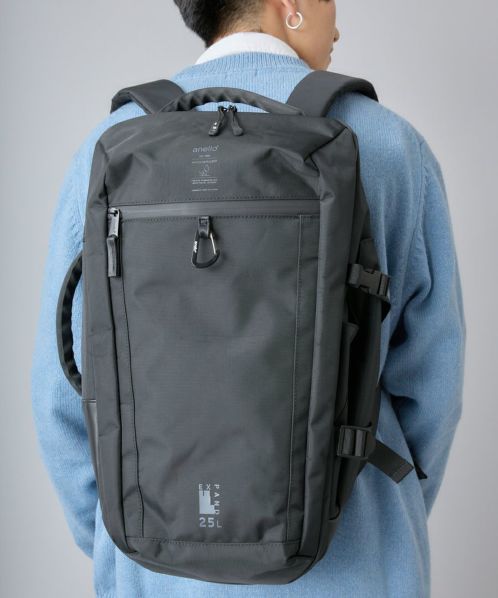 ご好評いただいておりましたEXPANDシリーズに待望の新型が登場しました。オフィシャルストア限定の特別なデザインです。クリアのブランドネームとシリーズ名“EXPAND”のロゴで凝った印象に。ワンランク上の特別なアイテムに仕上げました。撥水加工なので雨の日も安心しておでかけできるのが嬉しいポイント◎25L容量なので旅行にも最適です。
