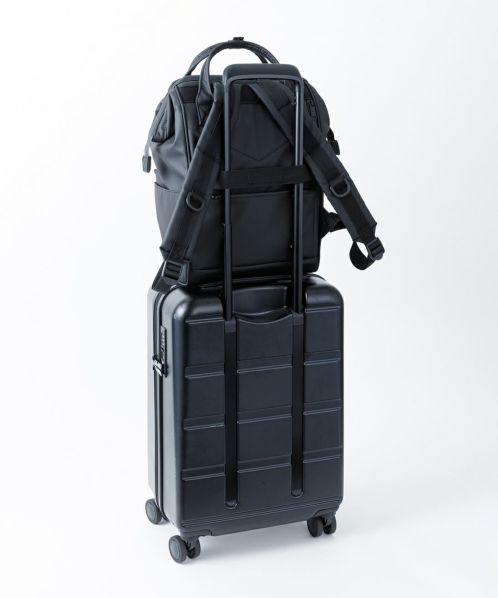 水を通しにくい生地を使用した耐水シリーズ。カラーリングとシンプルなデザインで、シーンや好みに合わせてお使いいただけます。anelloのアイコンバッグである口金を使用したレギュラーサイズのリュック。13インチのPCが収納可能で、セキュリティーポケットやキャリーオンテープなど充実した機能を搭載。普段使いだけでなく出張などのビジネスシーンにも◎