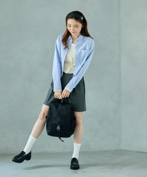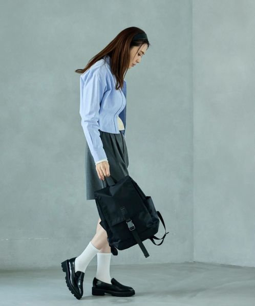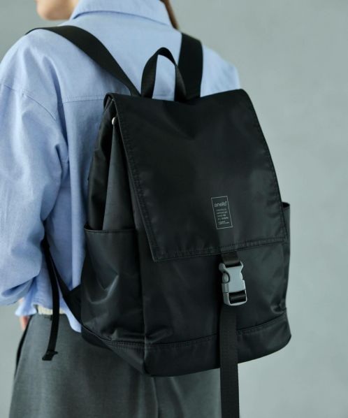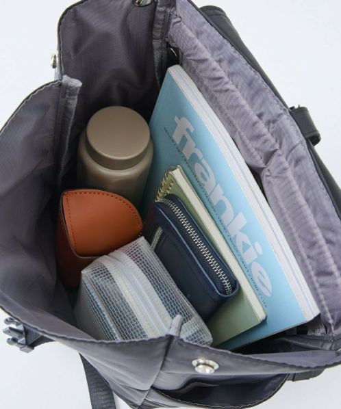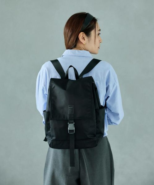 両面はっ水加工を施した生地にカラープラスチックパーツをアクセントに加えたSAIシリーズ。小ぶりながらA4サイズが収納可能。デイリーユースにぴったり。すっきりとした印象で、性別問わず持ちやすい〇