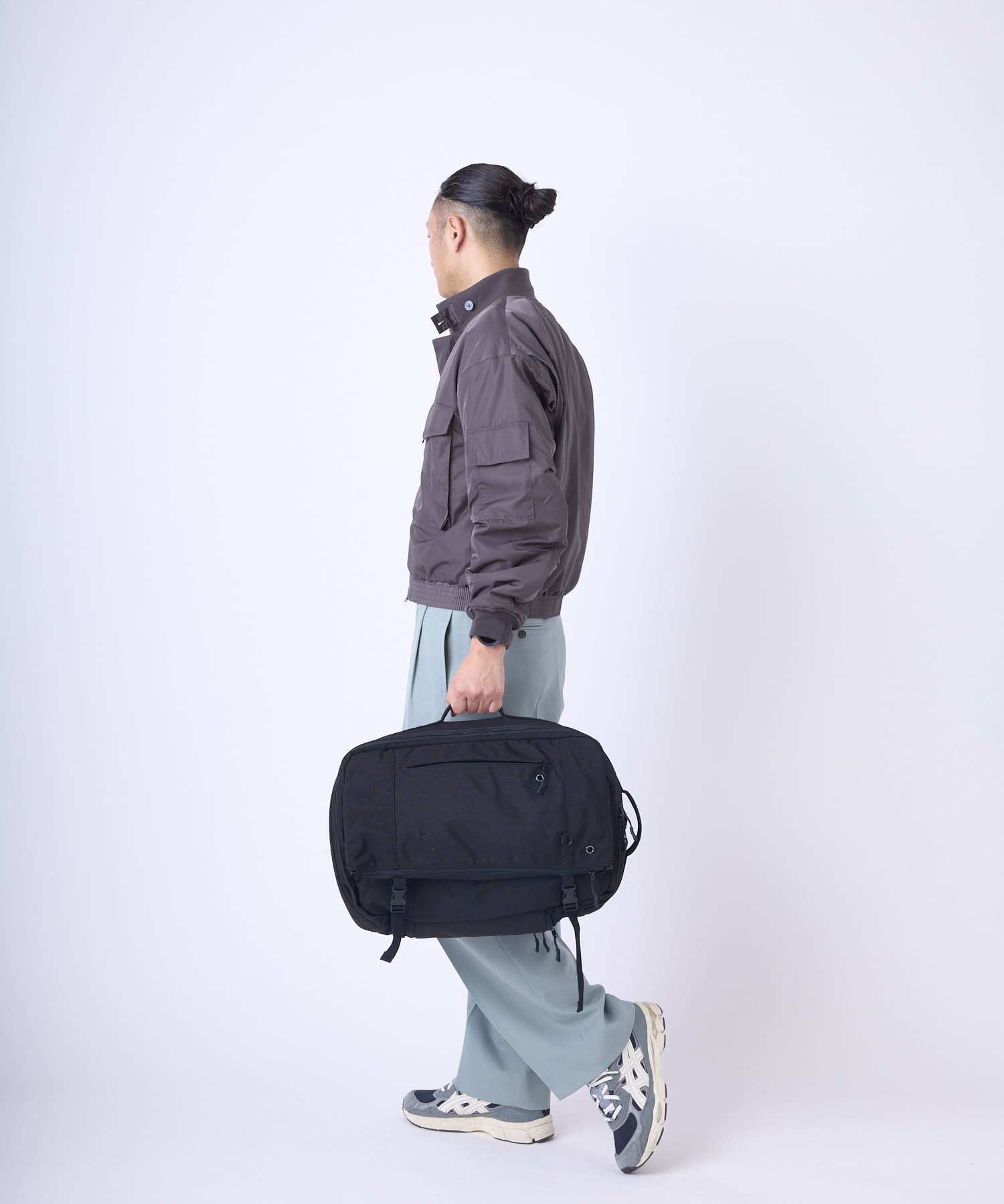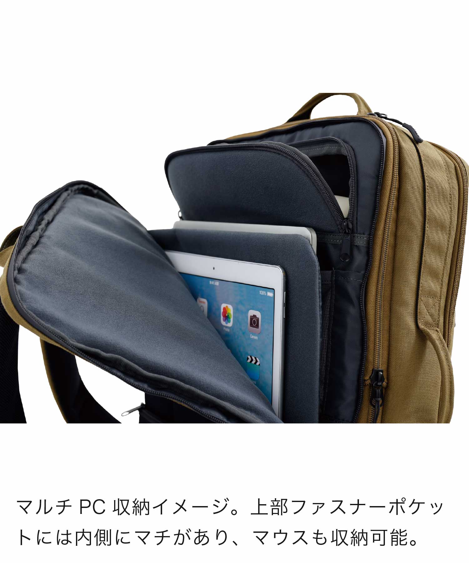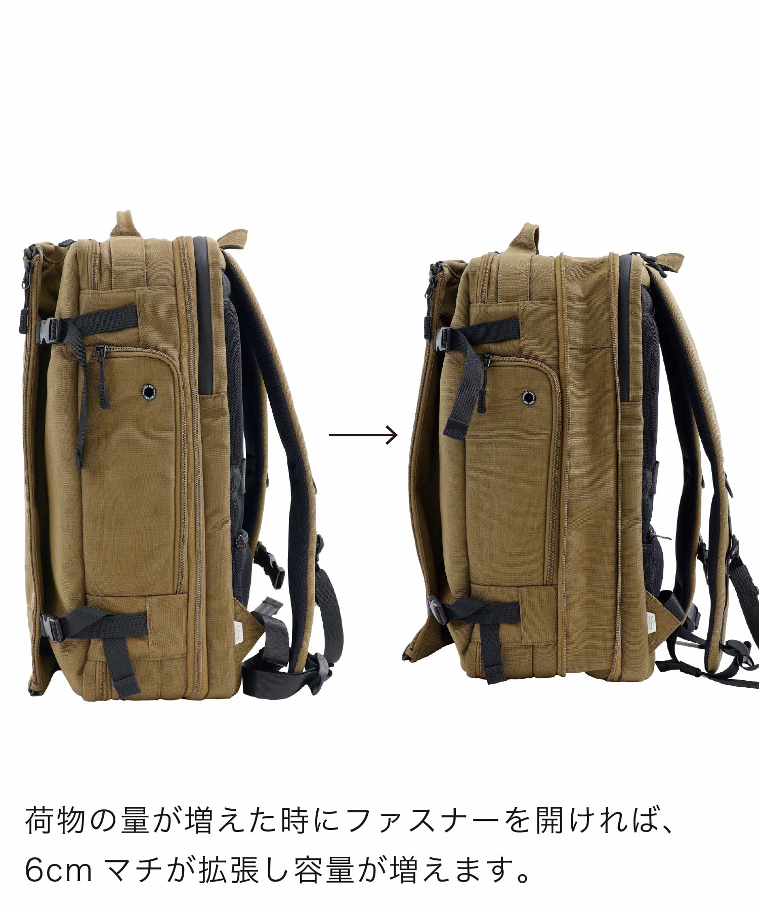 旅の荷物を効率的に収納する、洗練された多機能トラベルバックパック。 フロントの大型フラップポケットは衣類など嵩張る荷物をスマートに収納。 内部の伸縮性メッシュポケットにはシューズも収納可能。 背面のガジェットスペースにはPCはもちろん、A4書類やガジェット類の機能的なポケットを完備することでビジネスシーンにも対応。 拡張可能な構造により、日帰りの小旅行から長期の出張まで柔軟に形を変え、あなたの旅を軽やかにサポート。 fulcroらしい機能美が、あなたと未知なる目的地を繋ぐ支点となり、新たな冒険への扉を開く。