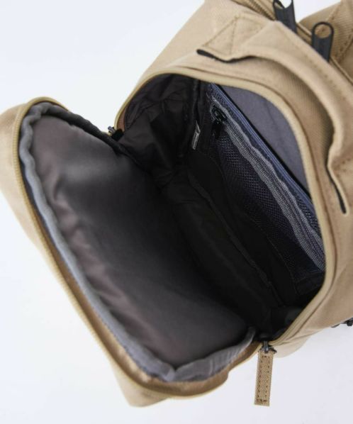 タブレット専用収納は底にもウレタンがあり角の衝撃にも強い。2層のフロントポケットは小物をスマートに使い分けが可能。荷物が少なくても型崩れせず、自立する設計でスタイリッシュ。