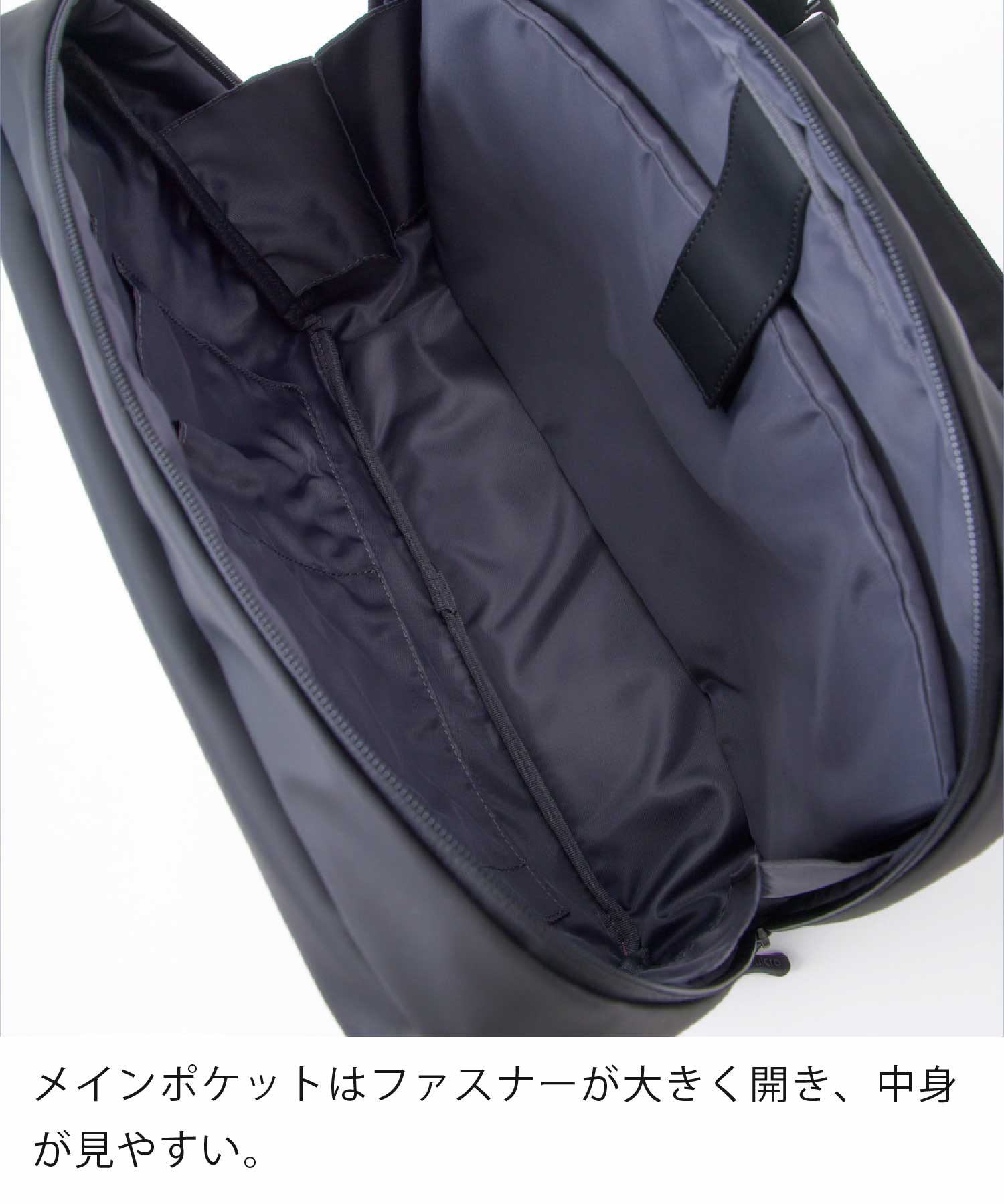 メイン収納は底部までファスナーが大きく開き、欲しいものがすぐに見つかる。