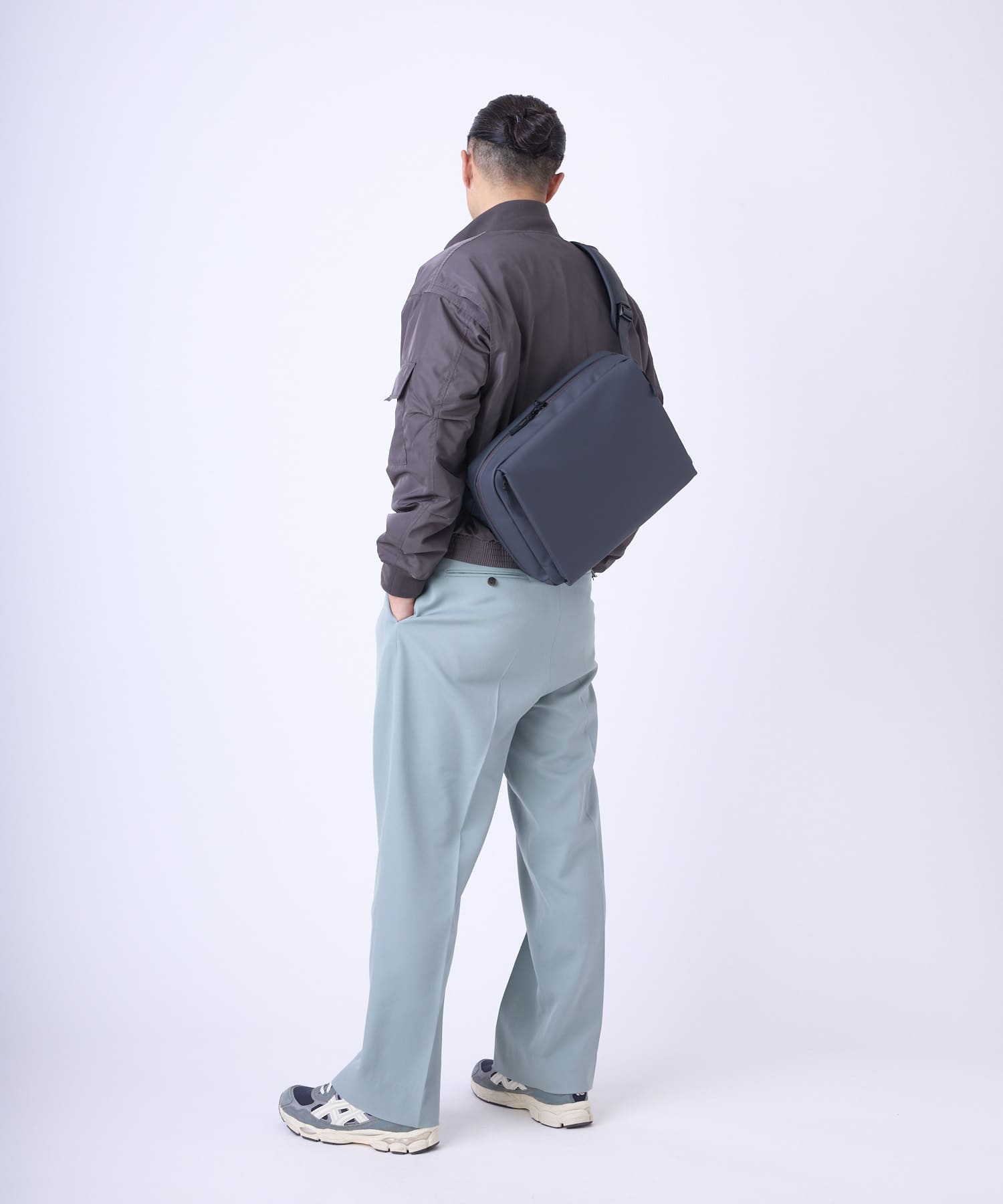 フロント両サイドの独立ポケットは、左右どちらの肩にかけてもアクセス可能。