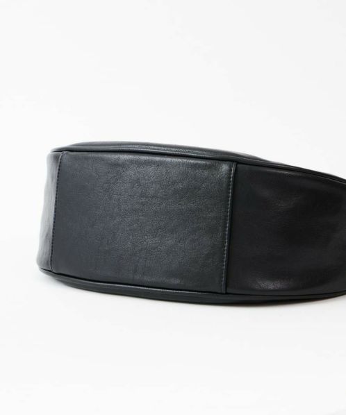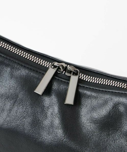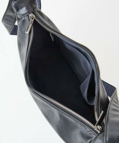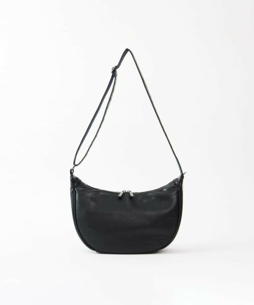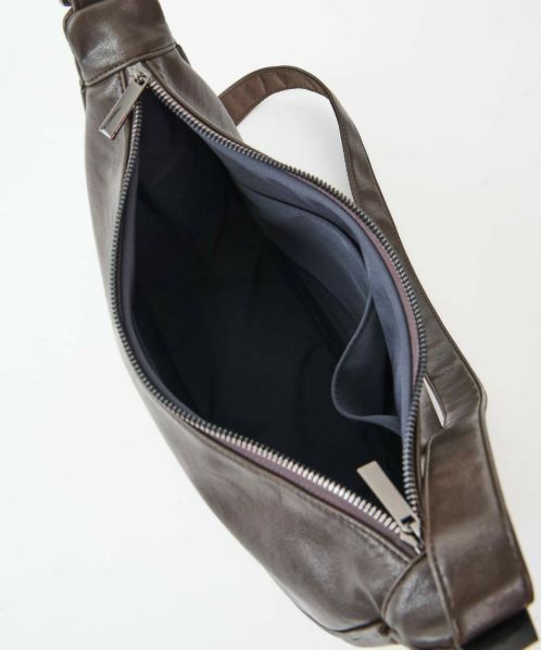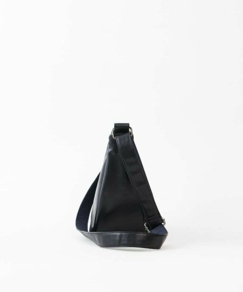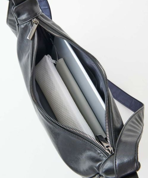 バッグの持ち手から本体までの流れるようなラインデザインで、肩から掛けた時でも形を崩さず身体に美しくフィットする。 皮革のような雰囲気でいて撥水性が高くシーンを選ばない。 長財布が入る程にマチが広いことで収納力が高く、自立する設計になっているので使用していない時でも存在感を発揮する。
