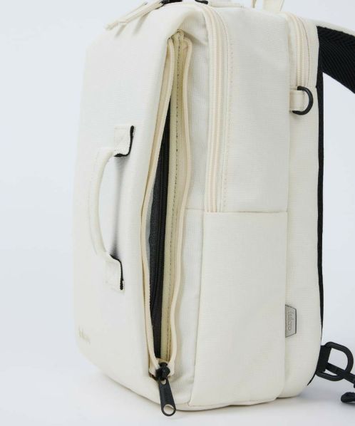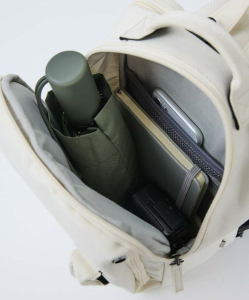 タブレット専用収納は底にもウレタンがあり角の衝撃にも強い。2層のフロントポケットは小物をスマートに使い分けが可能。荷物が少なくても型崩れせず、自立する設計でスタイリッシュ。