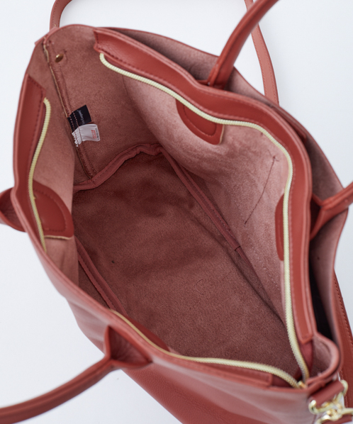 シンプルなデザインで、毎日持っても飽きのこないベーシックなバッグ。生地はしっとりなめらかな触り心地で、柔らかい印象を与えてくれます。自立するので、机や椅子に置いた時も使い勝手よく便利。手帳や筆記用具など、ちょっと荷物がある日にも活躍してくれる嬉しいサイズ感です。