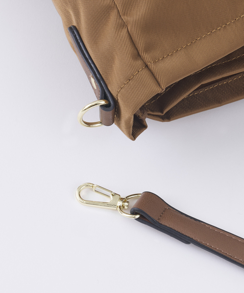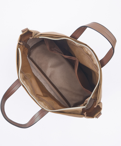 片方がファスナー仕様で財布などの貴重品の収納に。
