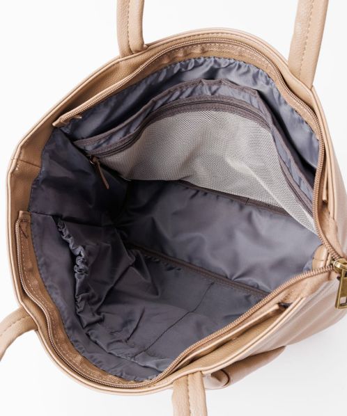 整理整頓苦手ママが考えた、気軽にざっくりたっぷり収納できるバッグ。シンプルな見た目ながら内側には、メッシュポケット・ギャザーポケット・クッションポケット!便利な3種類のポケットを装備◎自転車のカゴにも収まりやすい、ちょうど良いA4サイズ!長めのハンドルで腕周りも楽々。開口部は安心のファスナー仕様です。