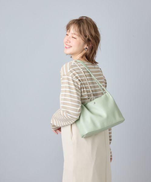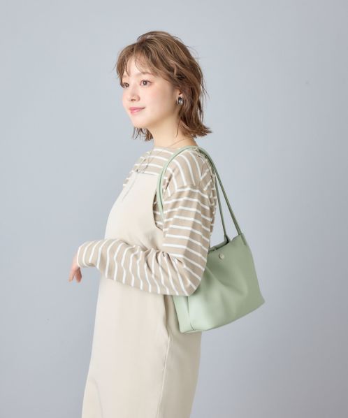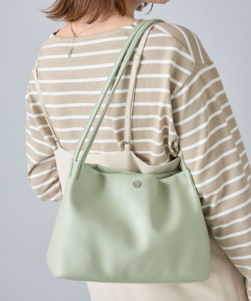 “だれでも、いつでも、どこでも”使えるトートバッグ。ざっくりラフに持てる合皮のアイテム。カジュアルにもキレイめにも使える万能なデザイン。長めのハンドルや充実したポケットで機能性もバッチリ!ミニトートバッグは、長財布が横位置に入るサイズ感。A5資料も入る見た目以上の収納力!