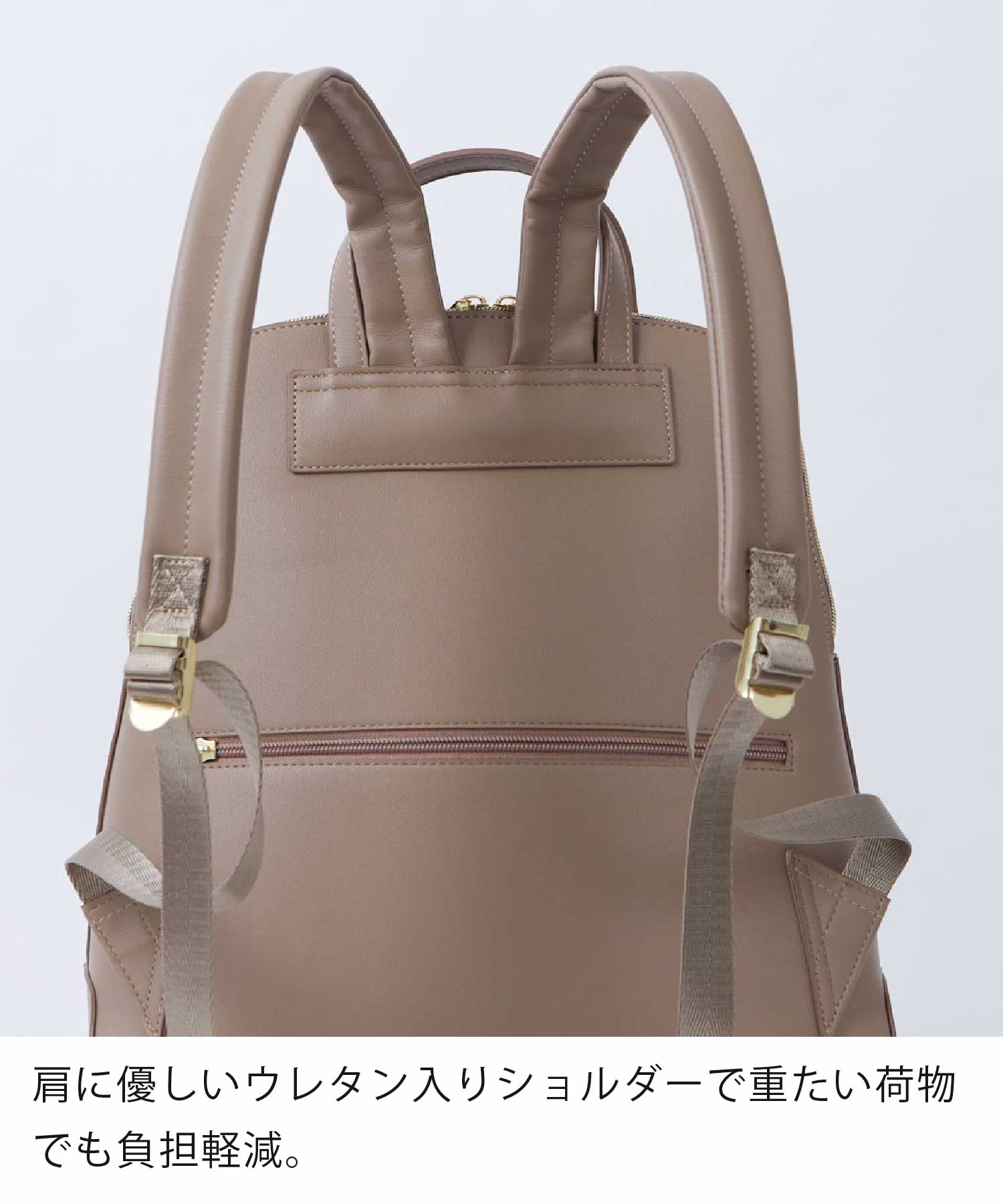 ★ 美人百花2025年6月号掲載商品 ★ 「 オンオフで使える軽いカバン 」をコンセプトに開発した合成皮革を 使用し、シンプルに仕上げたデザインが魅力。 メイン口にはA4書類が収まるポケットがあり通勤・通学にも おすすめです。 背面には長財布が収まるファスナーポケット付きでセキュリティ面も 安心◎ ショルダーには肩に優しいウレタン素材を使用し、 重い荷物を入れても負荷軽減されます。