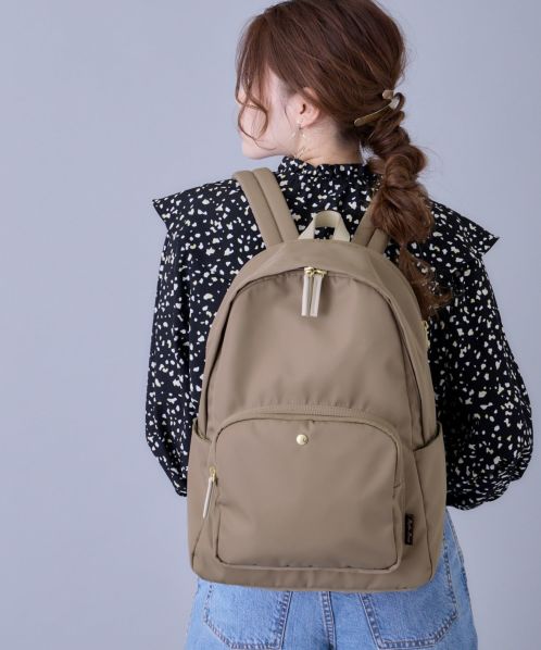 肩の負担を軽くするために、ショルダー内のクッション材にこだわりました。また、体に近い面(背面側)に13インチのPCが収納ができる専用ポケットを設置。背面の腰回りにクッションも入れ、より体のラインにフィットしやすくしました。ポケットも10個あるので、使い勝手も抜群。嬉しい撥水加工で、雨の日でも安心です。A4サイズもしっかり収納できるので、通勤や通学にもオススメの一押しリュックです。