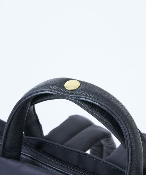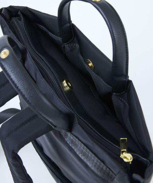 長らく愛されてきた肩楽(かたらく)シリーズに新型が登場!上品な光沢のあるナイロンに、手触りの良い柔らかい合皮を使い合わせました。肩への重さを軽減するため、厚めのクッションをショルダーへ入れています。A4書類が収納可能で、普段使いからオフィスシーンまで幅広く活躍します。女性が背負っても大きすぎないちょうど良いサイズを追求しました。