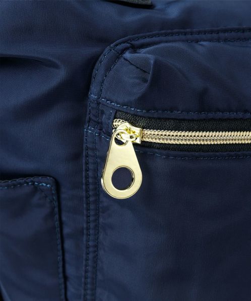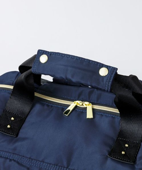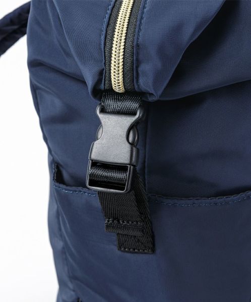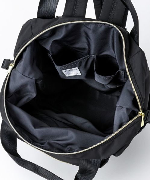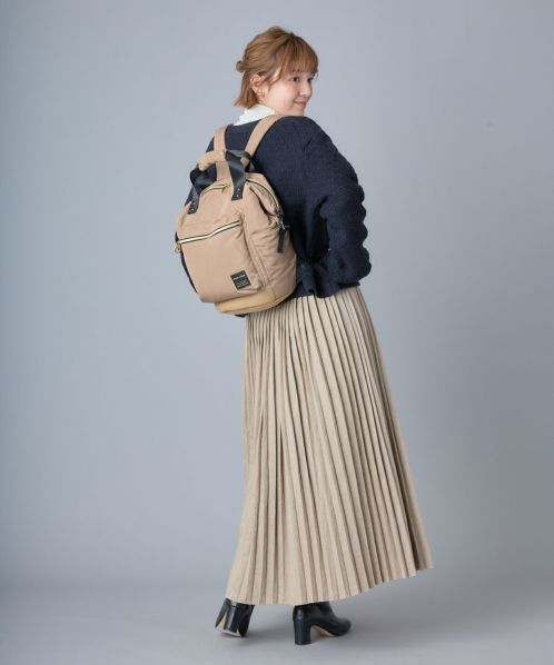 身体に馴染む柔らかい生地と丸みのあるシルエット女性らしいカジュアル感を演出。キラッとしたゴールドの金具がワンポイントに。シーズンレスに使えるシリーズです。サイドのバックルで容量やシルエットが変更できるリュック。A4の資料が収納可能なサイズで、アウトポケットはA5の資料も入る収納力抜群なアイテム。