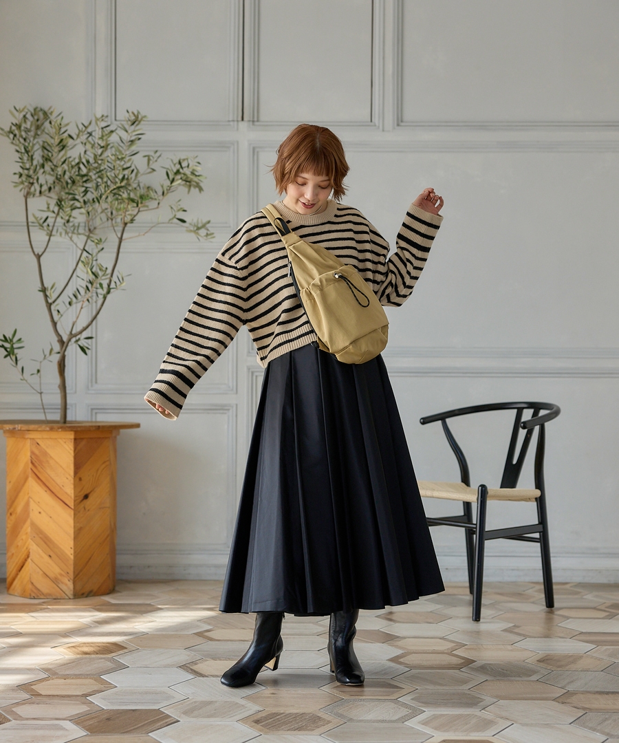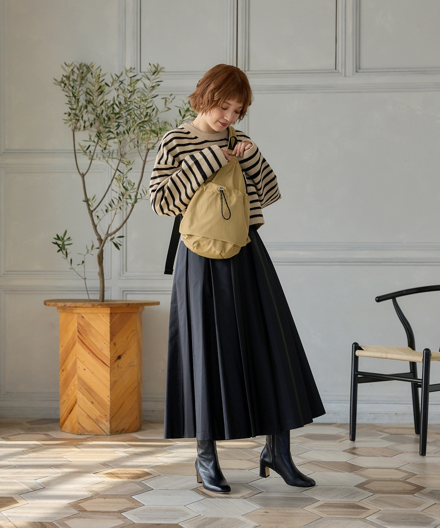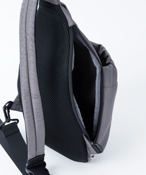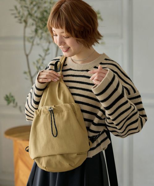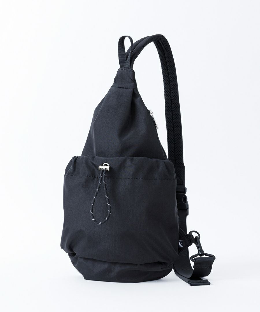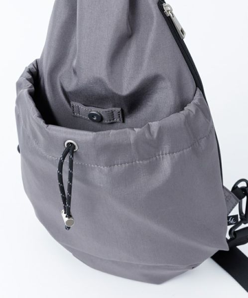 くしゅくしゅとしたフォルムが可愛い、トレンドのドロストポケットがポイントのカジュアルなシリーズ。生地はシャリっとした張り感と光沢のある撥水素材を使用しております。柔らかく軽量で、機能性もバッチリ◎両サイドファスナー式で左右から持ち物を取り出すことが可能。両手をあけたいアクティブなシーンにもぴったりなアイテム。