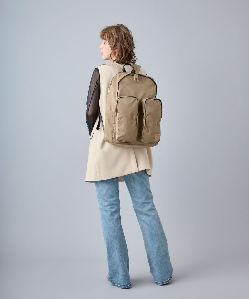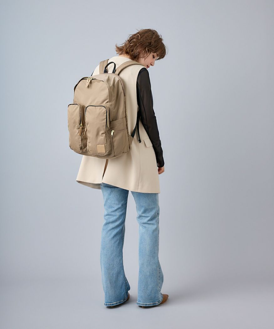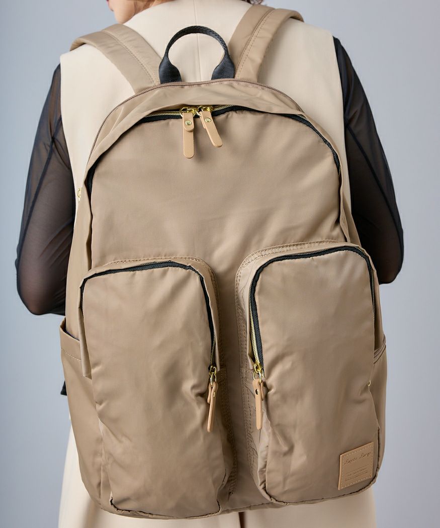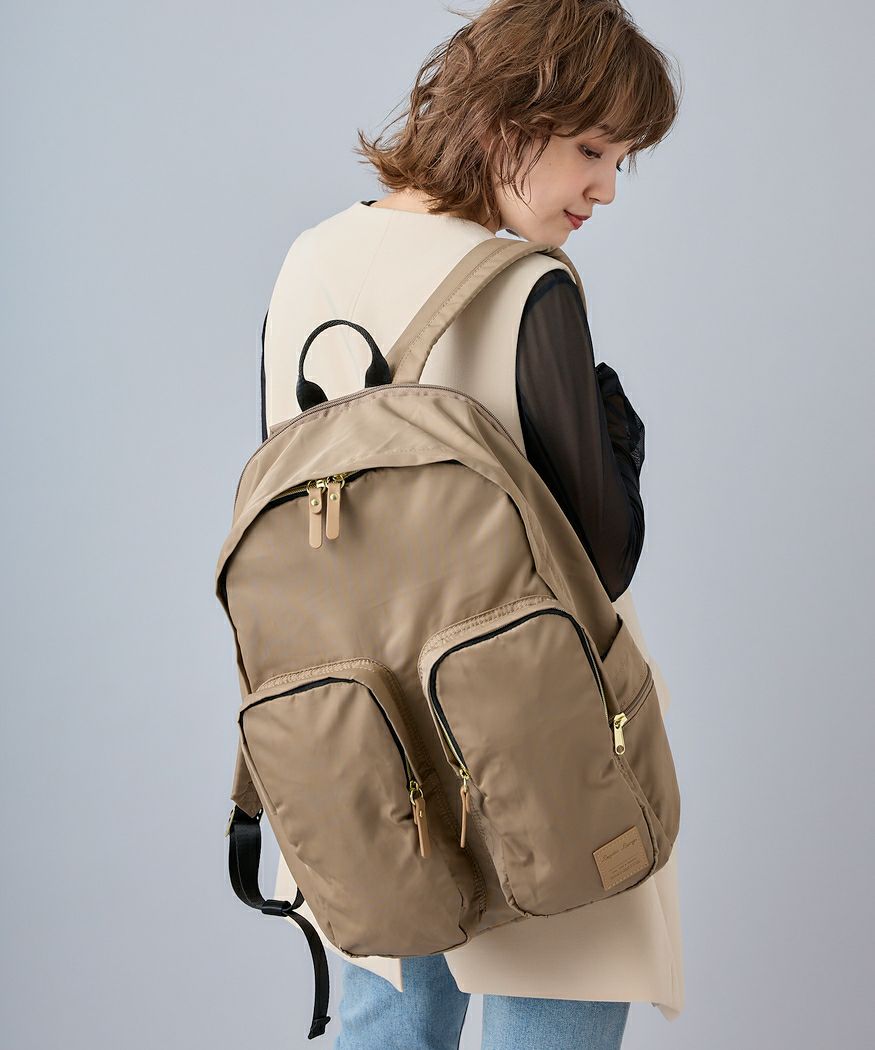 旅行や買い物、お出かけシーンに合わせて選べる撥水ナイロンシリーズ。前面のポケットには折り畳み傘やドリンクボトルなど収納可能で荷物の仕分けやすく便利◎13インチのPC収納可能でキャリーオンテープ付きで旅行や出張にも最適です。撥水なので雨の日のお出かけも安心。