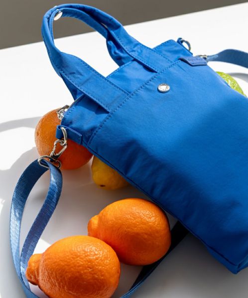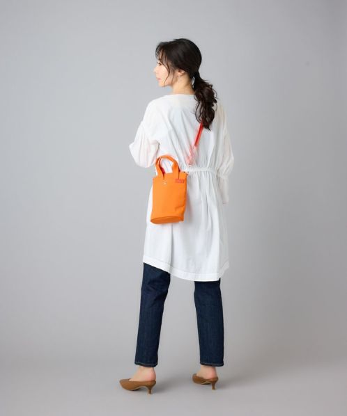 夏のおさんぽはこれ1つで完結!必需品を全部持ち歩ける身軽バッグ!サラリとした生地感で、外も中も両面撥水仕様なので梅雨?夏の雨や蒸し暑さの対策にぴったりなシリーズです。遊び心のあるカラフルな内生地配色もポイント。前面ポケットはスマホが入るサイズ感。ハンディファンと500mlペットボトルが同時に収納可能。夏場のフェスや愛犬とのお散歩などにもおすすめです。
