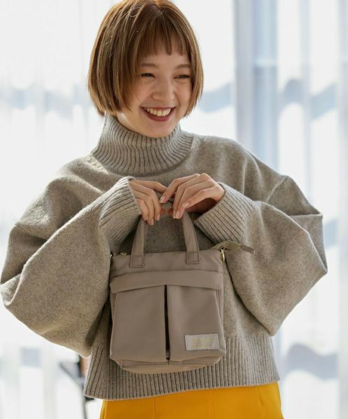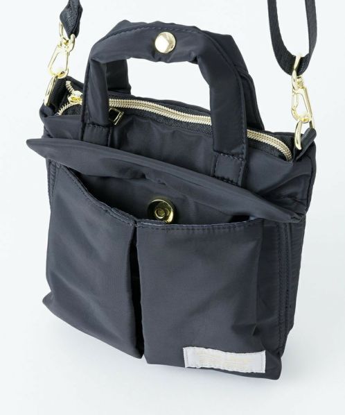 トレンドのヘルメットバッグを、上品なツヤ感のあるはっ水ポリエステルとゴールド金具を合わせ、キレイめな雰囲気に仕上げたシリーズ。機能性はそのままに、アーミーなアイテムを大人っぽくカジュアルに楽しめるデザイン!スプリングホック付きのもっちりハンドルで使い易さも◎ 開口部はファスナー付きで安心の仕様。ワンハンドルとショルダーの2WAYで使えるので、さまざまなシーンに対応します。前面のシングルポケットは二つ折りの財布も収納できる便利なサイズ感です。