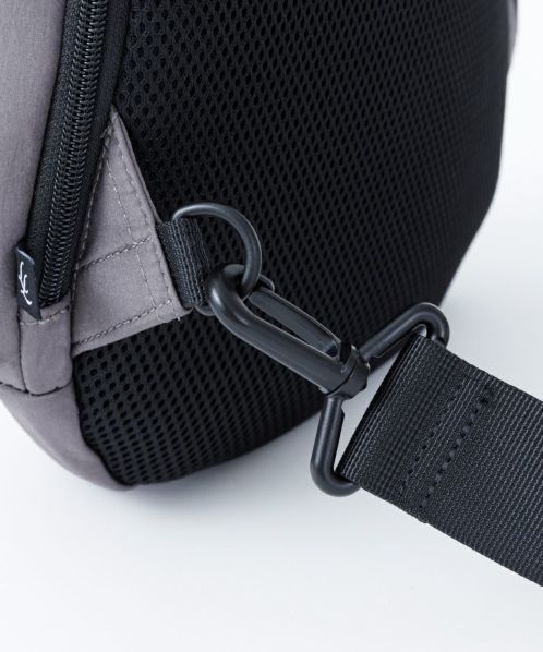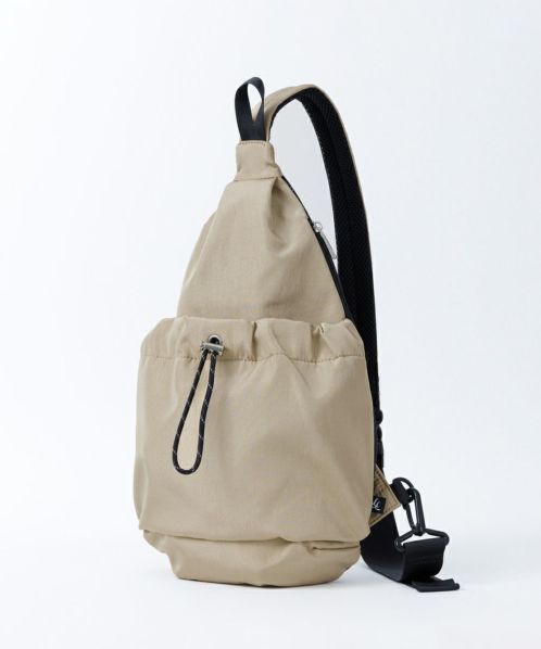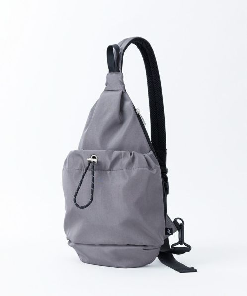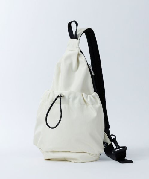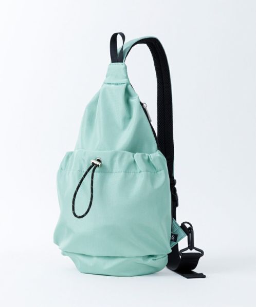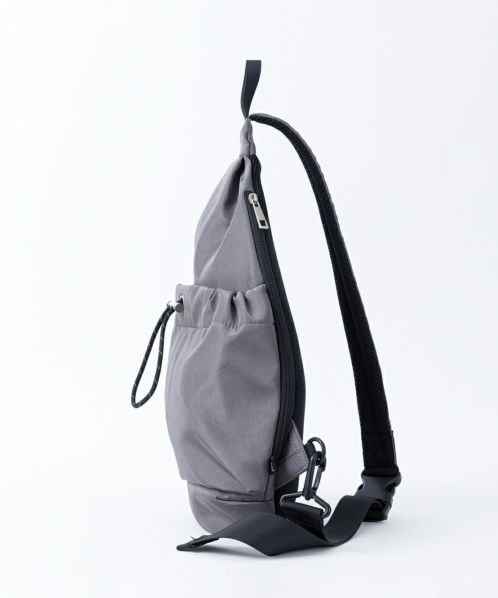 くしゅくしゅとしたフォルムが可愛い、トレンドのドロストポケットがポイントのカジュアルなシリーズ。生地はシャリっとした張り感と光沢のある撥水素材を使用しております。柔らかく軽量で、機能性もバッチリ◎両サイドファスナー式で左右から持ち物を取り出すことが可能。両手をあけたいアクティブなシーンにもぴったりなアイテム。