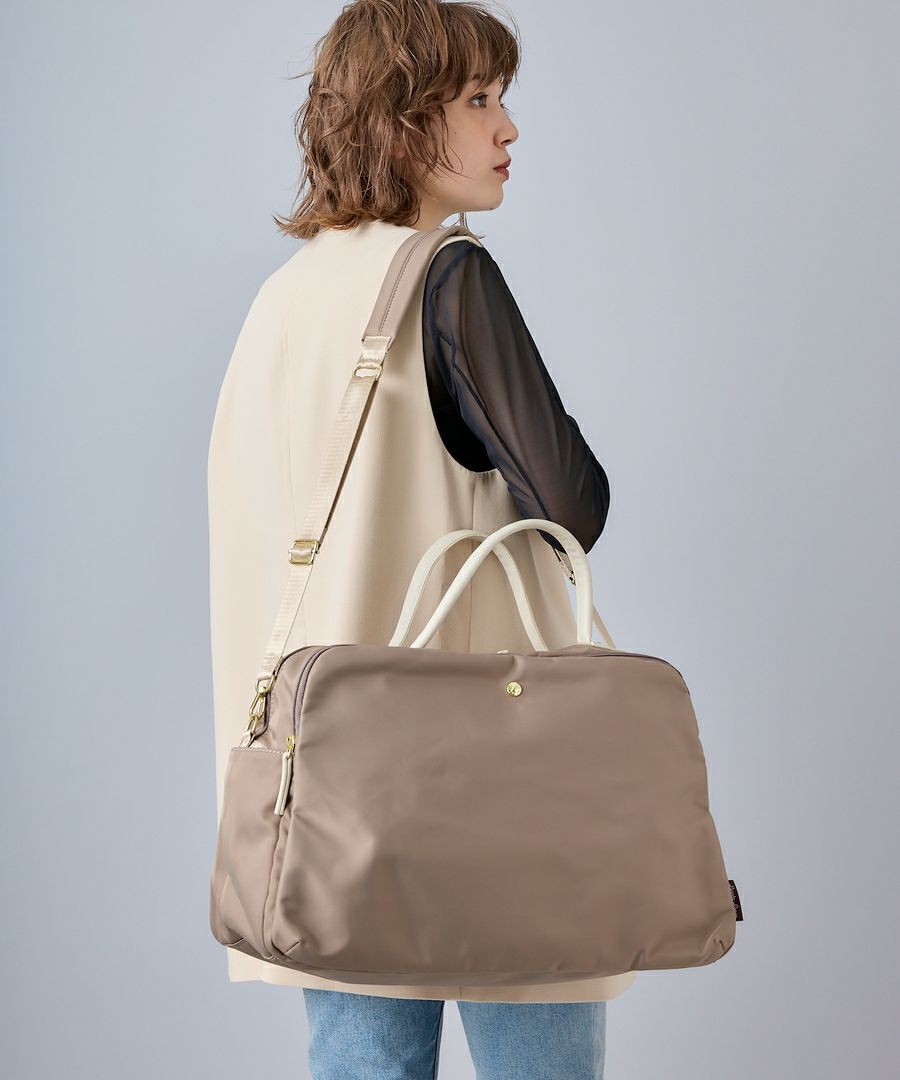 おかげさまで、累計販売数40万個の人気商品へ。肩楽シリーズに大容量ボストンバッグが登場しました。肩への負担を軽くするためハンドルやショルダーにこだわりました。旅行や出張はもちろん、ジム用や子育て用にも使えるの大容量が嬉しいポイント◎