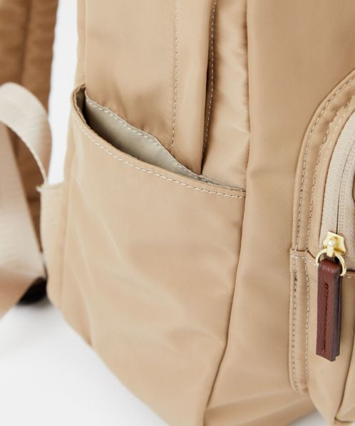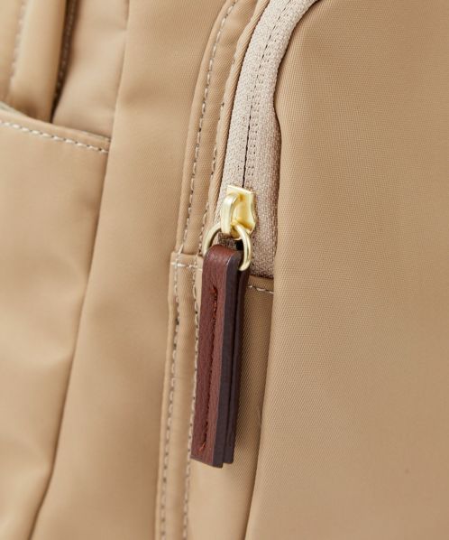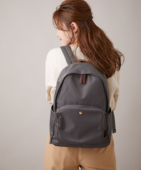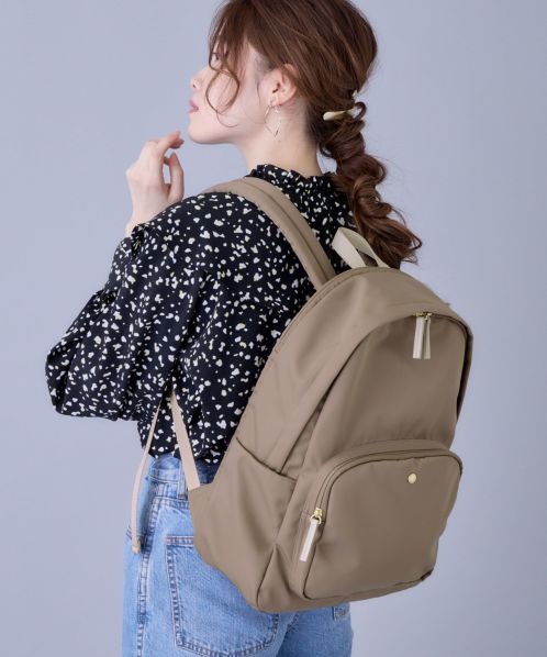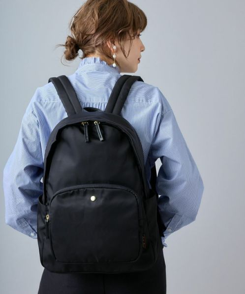 肩の負担を軽くするために、ショルダー内のクッション材にこだわりました。また、体に近い面(背面側)に13インチのPCが収納ができる専用ポケットを設置。背面の腰回りにクッションも入れ、より体のラインにフィットしやすくしました。ポケットも10個あるので、使い勝手も抜群。嬉しい撥水加工で、雨の日でも安心です。A4サイズもしっかり収納できるので、通勤や通学にもオススメの一押しリュックです。