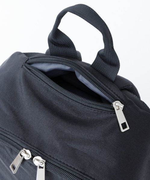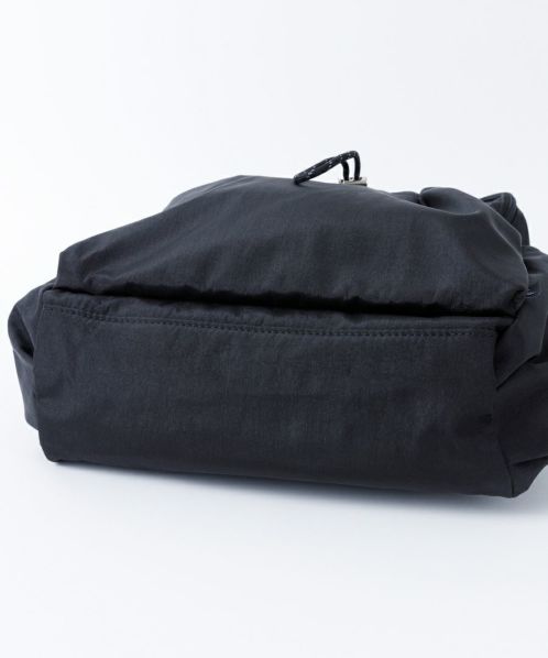 くしゅくしゅとしたフォルムが可愛い、トレンドのドロストポケットがポイントのカジュアルなシリーズ。生地はシャリっとした張り感と光沢のある撥水素材を使用しております。柔らかく軽量で、機能性もバッチリ◎正面ポケットのドロストの絞り方によってシルエットのアレンジが可能。A4サイズが収納可能で通勤・通学などに便利です。