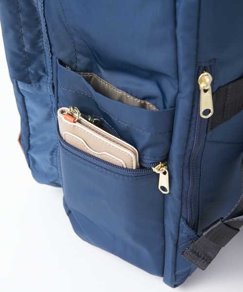 旅行や買い物、お出かけシーンに合わせて選べる撥水ナイロンシリーズ。前面のポケットには折り畳み傘やドリンクボトルなど収納可能で荷物の仕分けやすく便利◎13インチのPC収納可能でキャリーオンテープ付きで旅行や出張にも最適です。撥水なので雨の日のお出かけも安心。