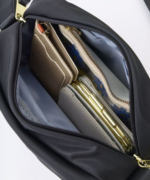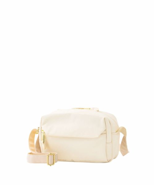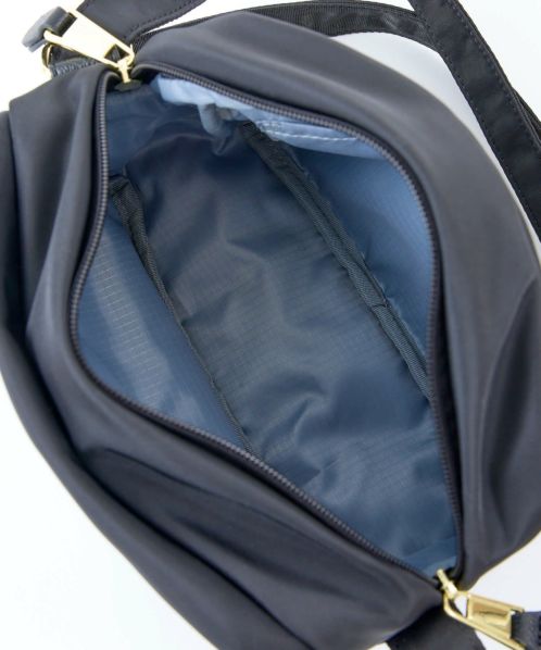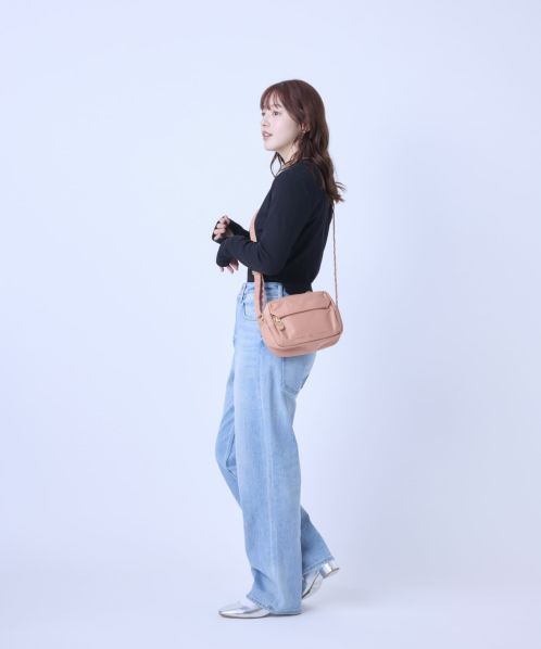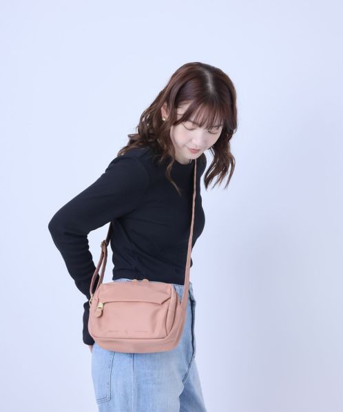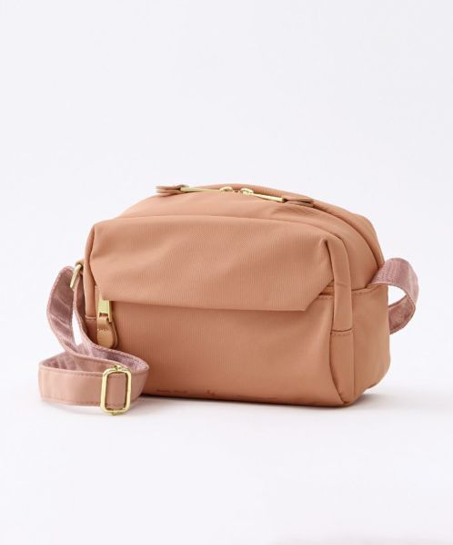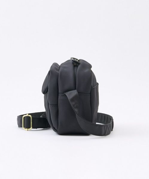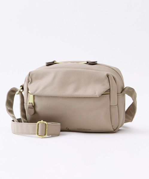 ふっくらとしたフォルムでステッチを極力見せないことでフェミニンな印象に。合皮の引手パーツやさりげない同系色ロゴラバープリントがより洗練された雰囲気に仕上げております。両面撥水加工なので雨の日のお出かけも安心です。