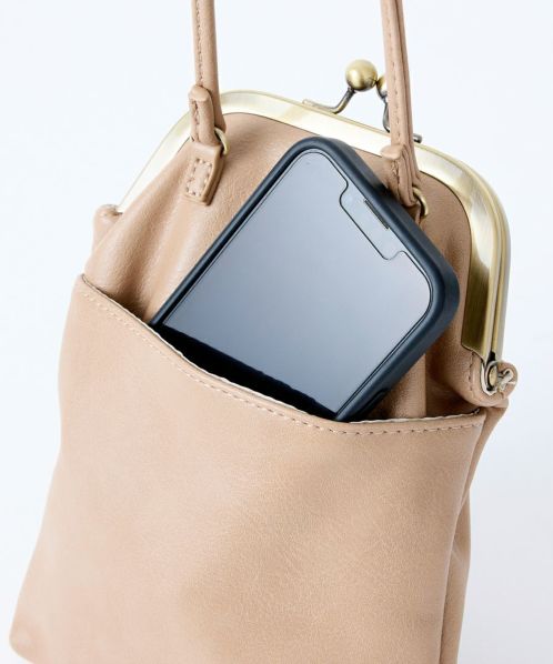 レトロな雰囲気で、コロンとしたフォルムがかわいいがま口バッグ。片手でパカっと開け閉めでき、さっと荷物を取り出せる使い易さ抜群のアイテム。丸みのある形で体に馴染みやすく、気軽に持ち運べる大きさなので、普段のお出かけや旅行など幅広いシーンに活躍します。スマホや折り財布などが収納可能で、背面ポケットはスマホやパスケースが入るサイズ感。口折れ仕様なので、荷物の量によってサイズが使い分けできるのが魅力的です。