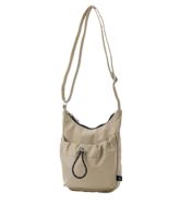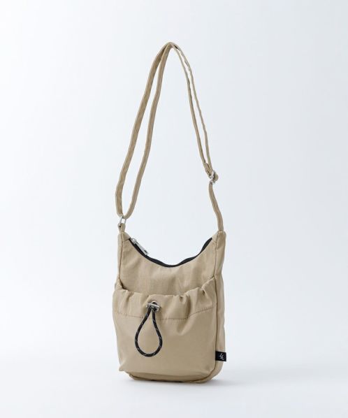 くしゅくしゅとしたフォルムが可愛い、トレンドのドロストポケットがポイントのカジュアルなシリーズ。生地はシャリっとした張り感と光沢のある撥水素材を使用してます。柔らかく軽量で、機能性もバッチリ◎長財布が縦に収まるサイズ感で、開口部はファスナー開閉式になっており安心。ちょっとした外出時に便利なアイテムです。