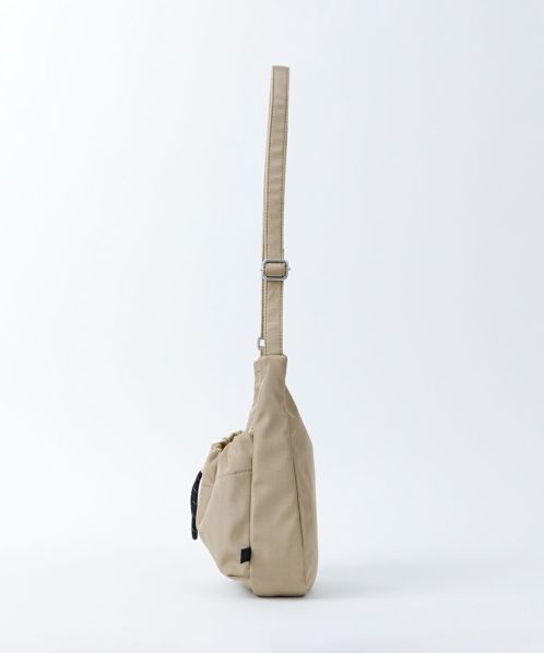 くしゅくしゅとしたフォルムが可愛い、トレンドのドロストポケットがポイントのカジュアルなシリーズ。生地はシャリっとした張り感と光沢のある撥水素材を使用してます。柔らかく軽量で、機能性もバッチリ◎長財布が縦に収まるサイズ感で、開口部はファスナー開閉式になっており安心。ちょっとした外出時に便利なアイテムです。