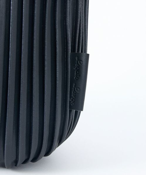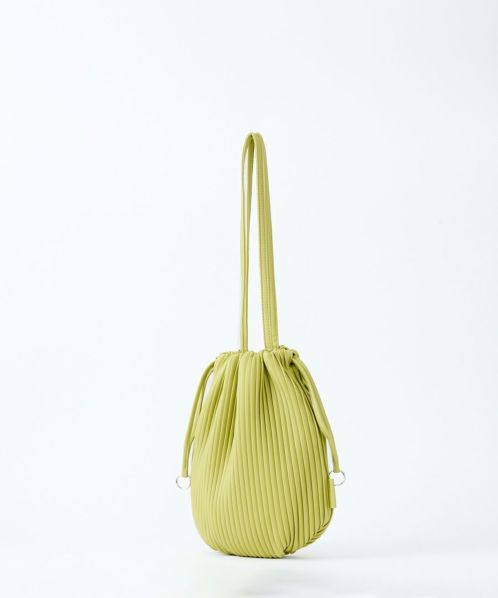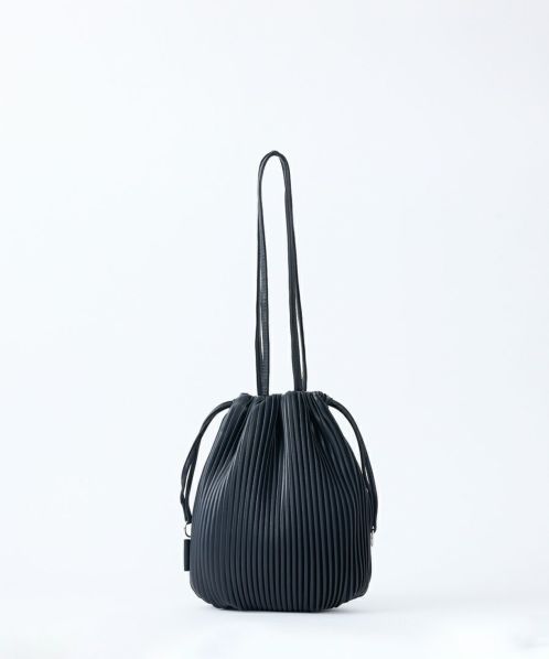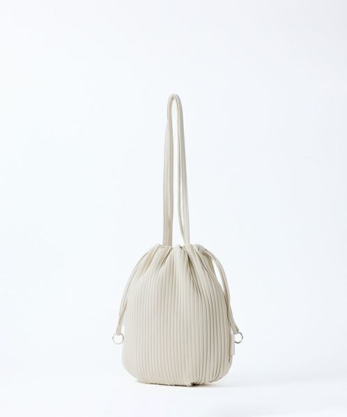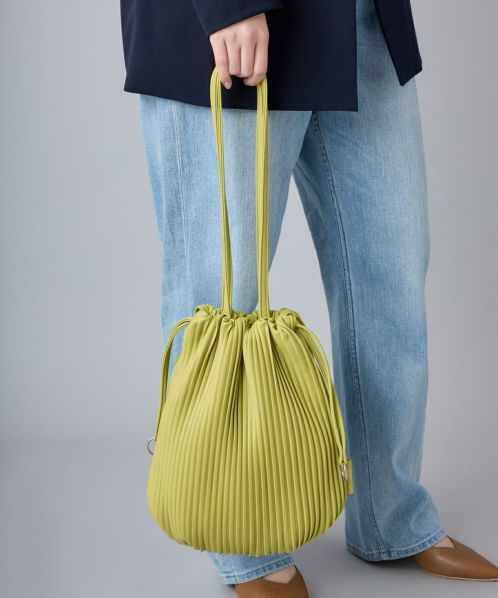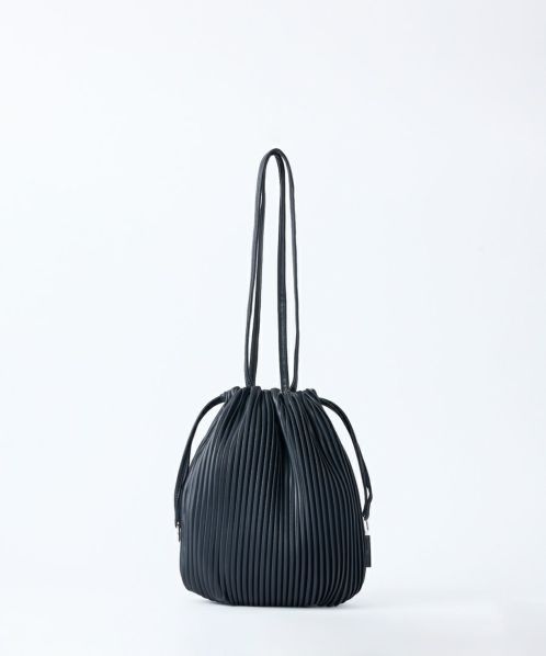 細かなプリーツと立体的な丸みのあるシルエットが魅力のアイテム。軽くて柔らかい、なめらかなフェイクレザーがポイント。キレイめ・カジュアル・フェミニンなど、どんなファッションにも馴染むデザインです。A5ノートがすっぽり入るトートバッグ。ペットボトルが縦型に入るサイズ感です。ハンドルは長めに設定されていて、肩にかけたまま荷物を取り出しやすいデザイン。内側にポケットがついているので、細かな荷物も収納しやすい仕様になっています。
