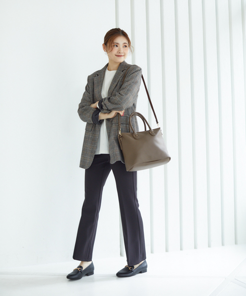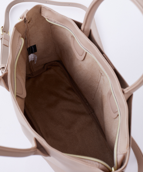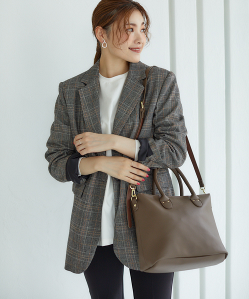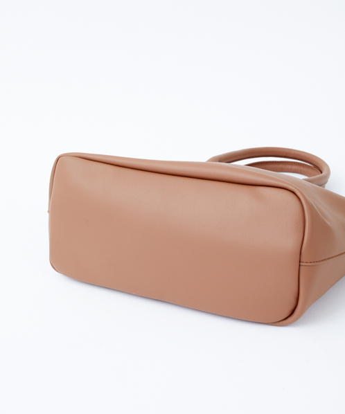 シンプルなデザインで、毎日持っても飽きのこないベーシックなバッグ。生地はしっとりなめらかな触り心地で、柔らかい印象を与えてくれます。自立するので、机や椅子に置いた時も使い勝手よく便利。手帳や筆記用具など、ちょっと荷物がある日にも活躍してくれる嬉しいサイズ感です。