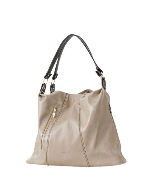 表情のある風合いの良い合皮がポイントのバッグ。過去ヒットしたざっくりと使える2ハンドルトートがリバイバル! A4サイズの資料が楽々と入り、ポケットは3つと収納力抜群。きらりと光る金属パーツと、ハンドルとボディに配されたステッチが上品な印象を与える逸品です。