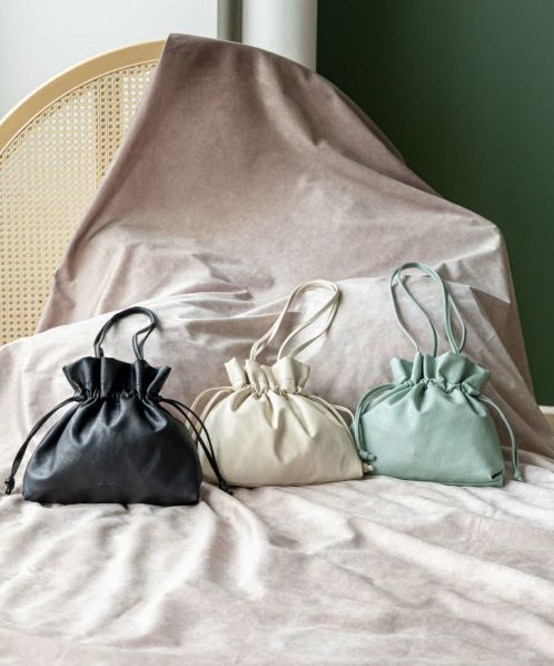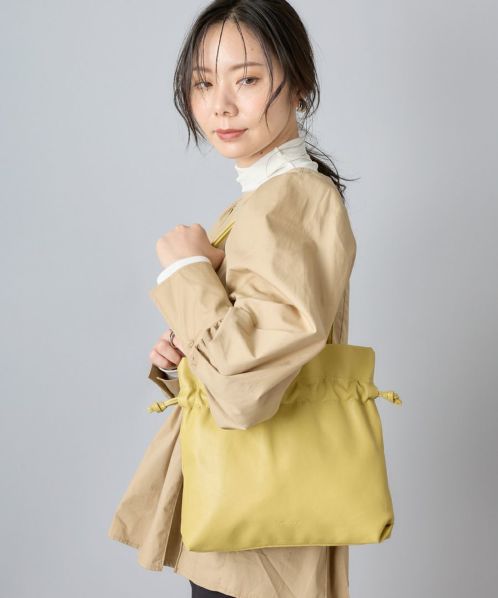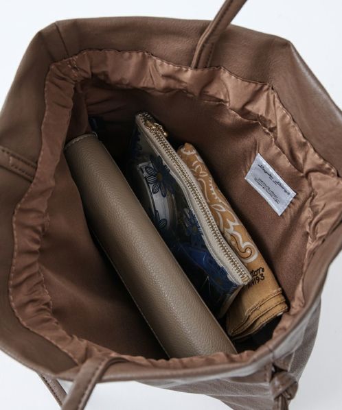 くしゅっと感が今っぽい、愛着のわく巾着バッグ “ぎゅぎゅっトート”。巾着を絞っても、スクエア型で使っても可愛く持てるデザイン! ペットボトルと長財布が収まる小ぶりながら便利なサイズ感。持ち手は肩にしっかりと掛けられる長さを確保しています。持ったまま巾着を開け閉めできるため、使い勝手も抜群! 汚れてしまっても洗える合皮の素材というのも嬉しいポイントです。