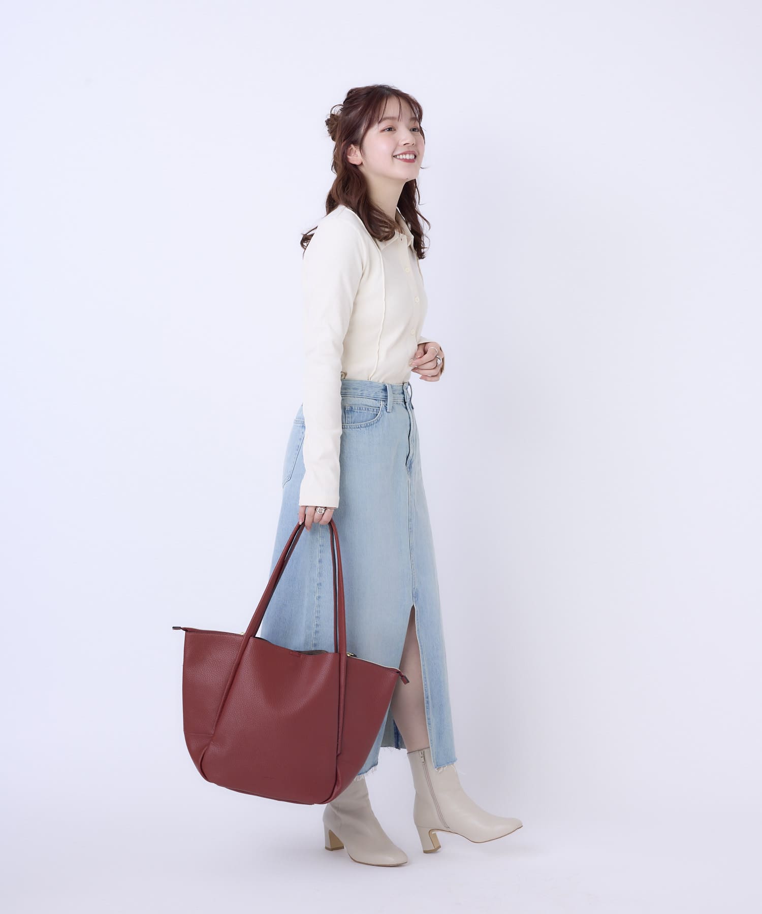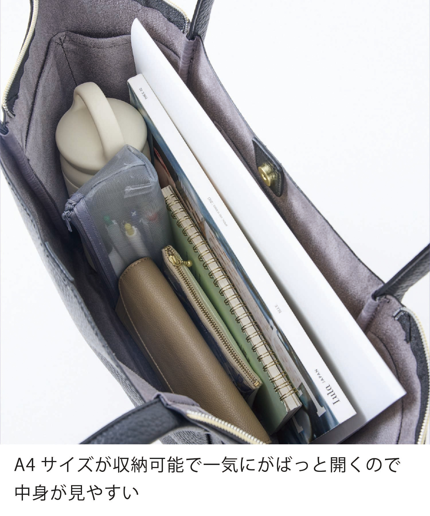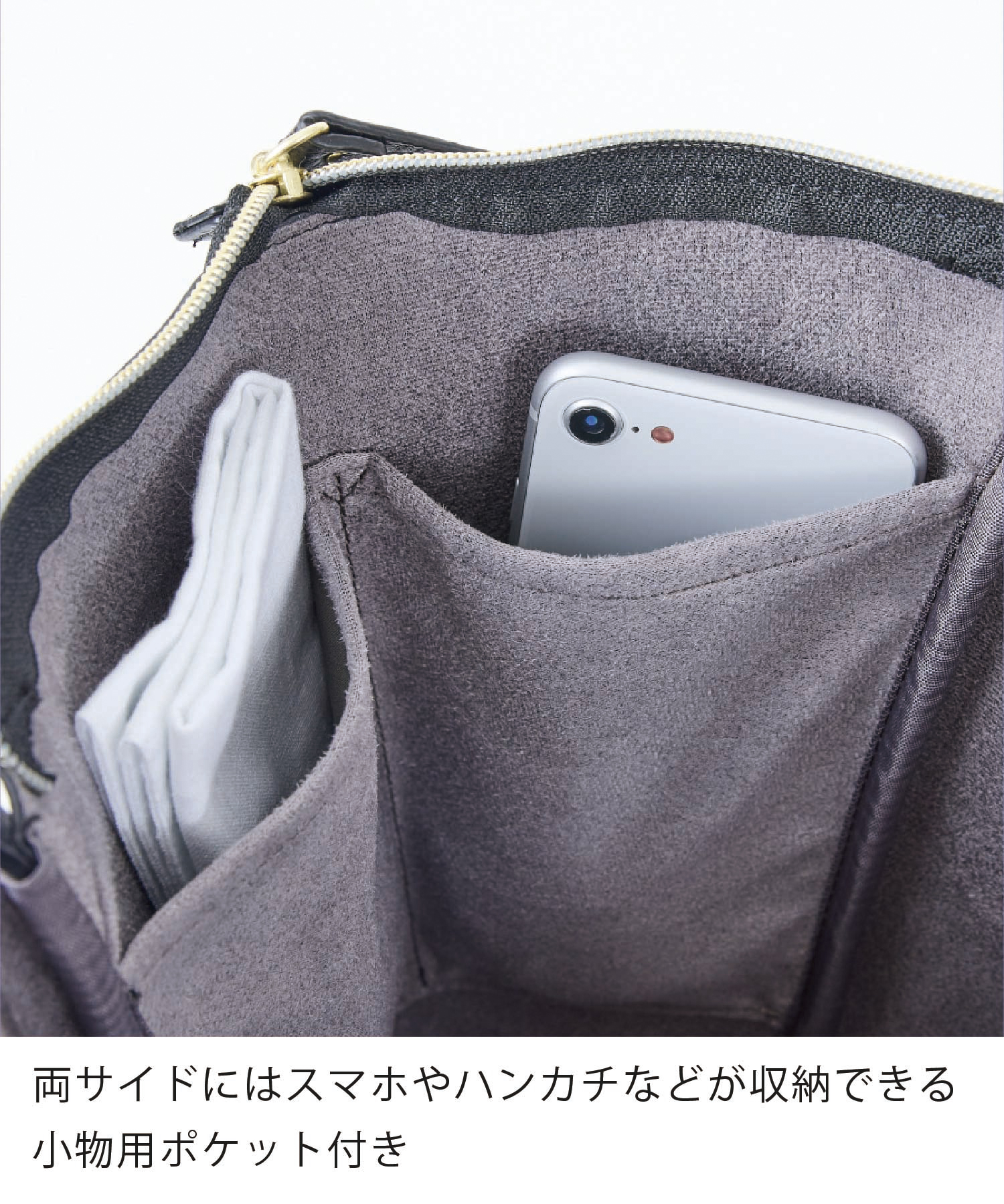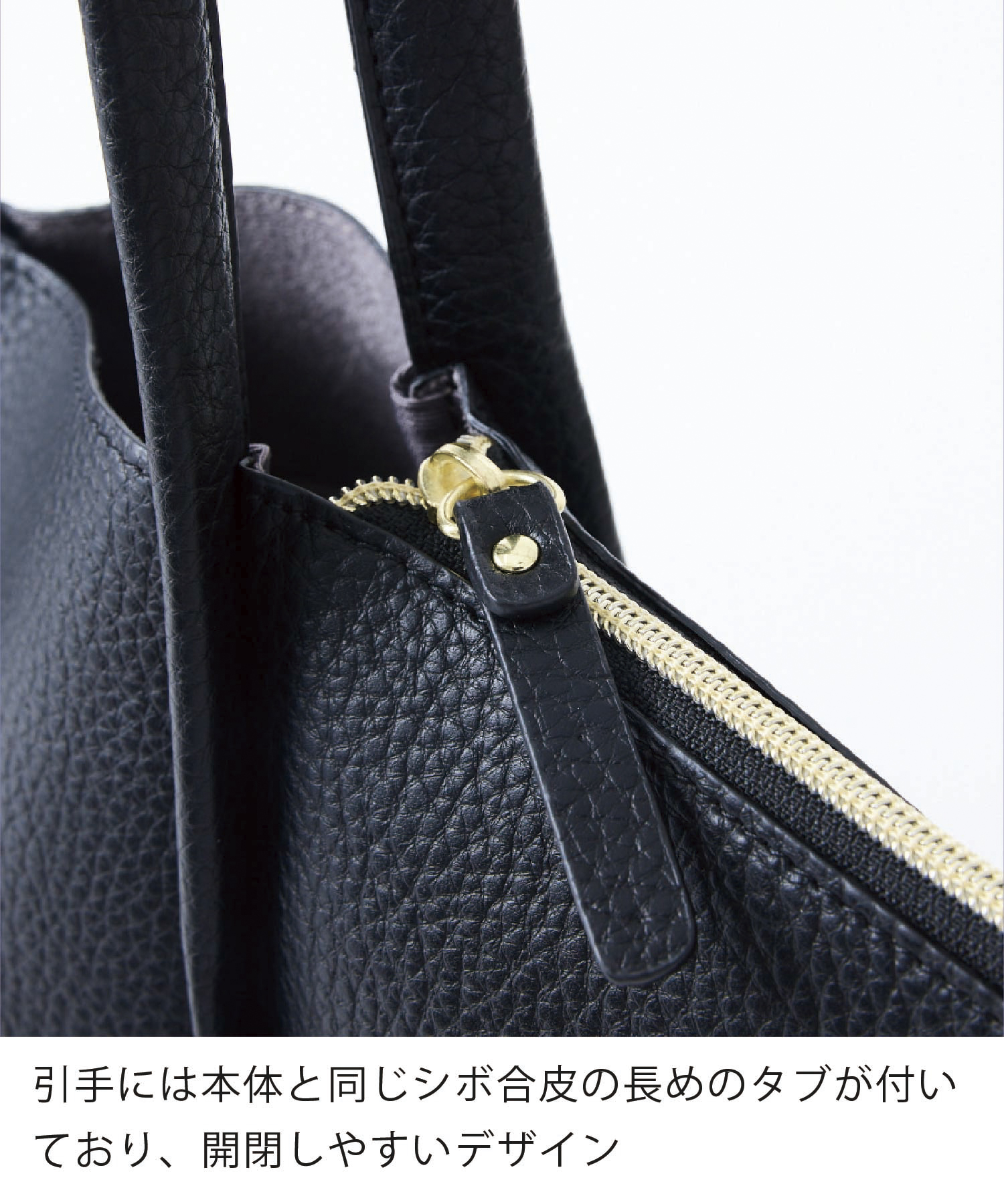 おかげさまで、累計販売数3.5万個の人気商品へ。「カジュアル」と「きちんと」の両立が叶うレトロシボシリーズ。本革のような柔らかさがあり奥深いシボ合皮を全面に使用。どこか雰囲気漂う重厚感ある見た目とは反して本体は驚くほど軽い仕上がりになっております。メイン開口部を全部開けなくても、サイドポケットにアクセスできる便利な仕様◎バッグの両サイドには小物用のポケット付きなので使用頻度の高いスマホやパスケースなどを入れておくと少ない動作で出し入れできるのが嬉しいポイント◎