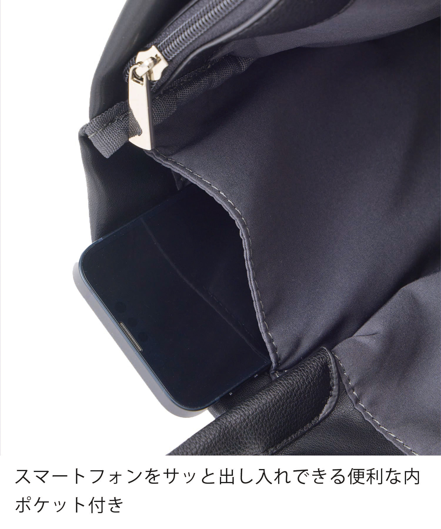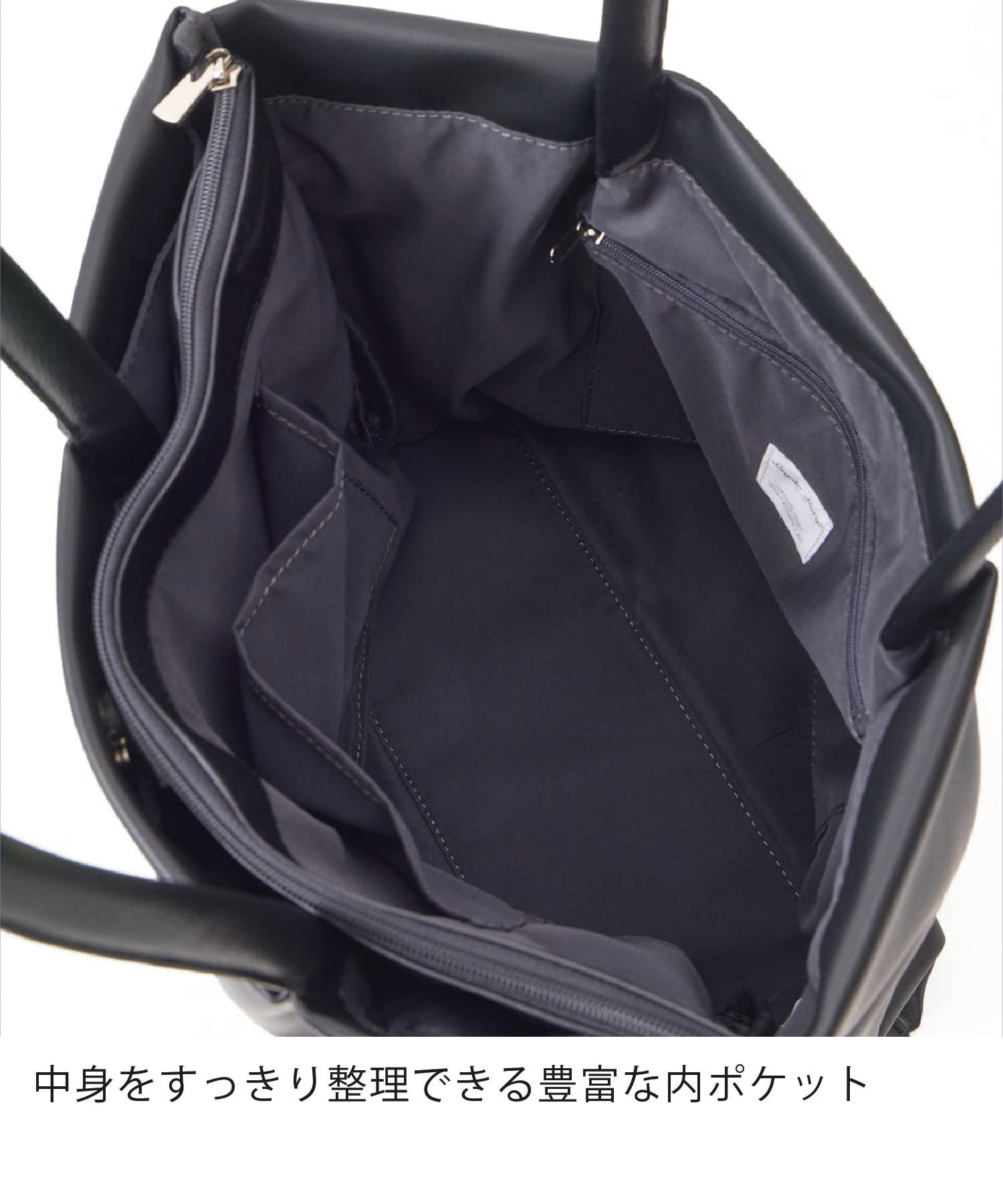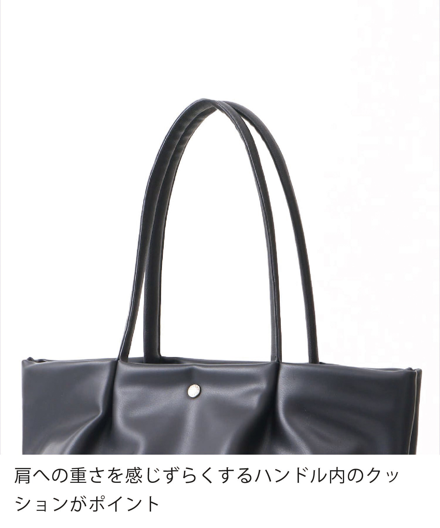おかげさまで、累計販売数40万個の人気商品へ。長らく愛されてきた肩楽(かたらく)シリーズに新型が登場!肩の負担を軽くするために、ハンドル内のクッション材にこだわりました。なめらかな微光沢生地でカジュアルスタイルも、瞬時に「お出かけ仕様」に格上げします。シンプルながらも光沢が放つオーラで、持つだけでコーデの主役になるアイテム。A4サイズもしっかり収納できるので、通勤や通学にぴったりの商品です。
