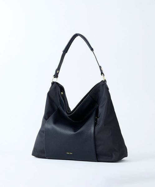 上品な光沢感のあるポリエステル素材とシボが型押しされたフェイクレザーの組み合わせが大人の雰囲気◎A4の大きなファイルも収納可能なので通勤・通学にも最適です。左右どちらの肩に掛けても使いやすい2つのフロントファスナーポケットがあるのが嬉しいポイント。