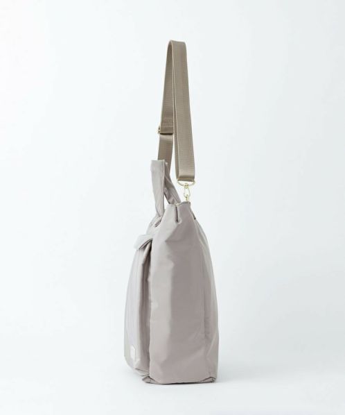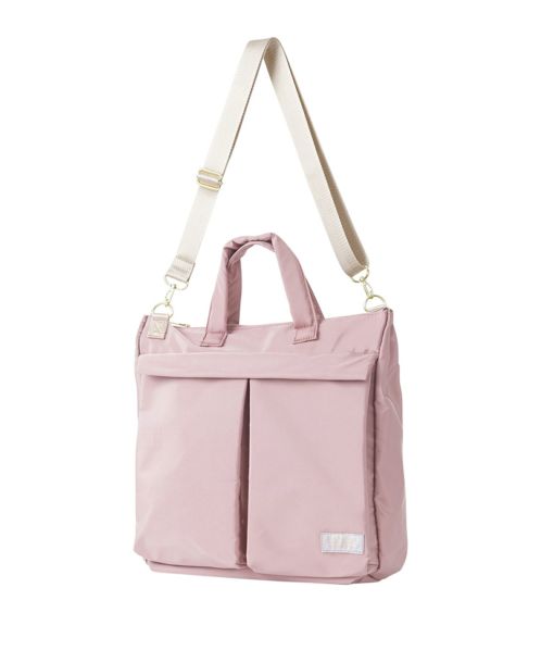 トレンドのヘルメットバッグを、上品なツヤ感のあるはっ水ポリエステルとゴールド金具を合わせ、キレイめな雰囲気に仕上げたシリーズ。機能性はそのままに、アーミーなアイテムを大人っぽくカジュアルに楽しめるデザイン!スプリングホック付きのもっちりハンドルで使い易さも◎ 開口部はファスナー付きで安心の仕様。ワンハンドルとショルダーの2WAYで使えるので、さまざまなシーンに対応します。メインポケットはA4サイズの資料などが余裕で入り、内ポケットも充実しています。前面のツインポケットは長財布や折り畳み傘、500mlペットボトルも収納できる便利なサイズ感です。