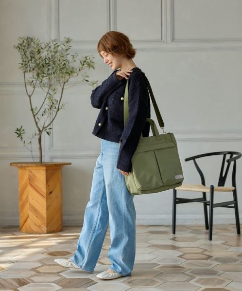 トレンドのヘルメットバッグを、上品なツヤ感のあるはっ水ポリエステルとゴールド金具を合わせ、キレイめな雰囲気に仕上げたシリーズ。機能性はそのままに、アーミーなアイテムを大人っぽくカジュアルに楽しめるデザイン!スプリングホック付きのもっちりハンドルで使い易さも◎ 開口部はファスナー付きで安心の仕様。ワンハンドルとショルダーの2WAYで使えるので、さまざまなシーンに対応します。メインポケットはA4サイズの資料などが余裕で入り、内ポケットも充実しています。前面のツインポケットは長財布や折り畳み傘、500mlペットボトルも収納できる便利なサイズ感です。