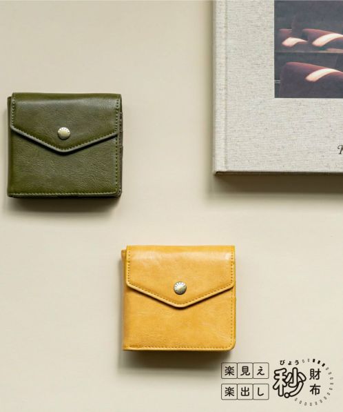ホックを開けば一目で見える、楽見え、楽だしの秒財布。小銭入れが大きく開くので見つけやすいのも嬉しいポイント◎取り出しやすい切れ込みでカードの取りやすいのも魅力的。