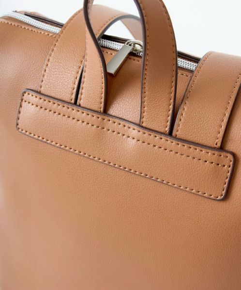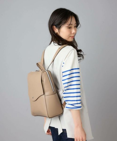 「え、かるい!」と、思わず声をあげてしまう軽量感。高級感と落ち着きがあるのでカジュアルコーデにこのバッグを合わせるだけで一気にきちんと感が出ます。重くて敬遠していた合皮のリュックも、これなら可愛いくラクラク!ほどよいハリとやわらかさがあり、本革のようなしっとりとした手触りです。